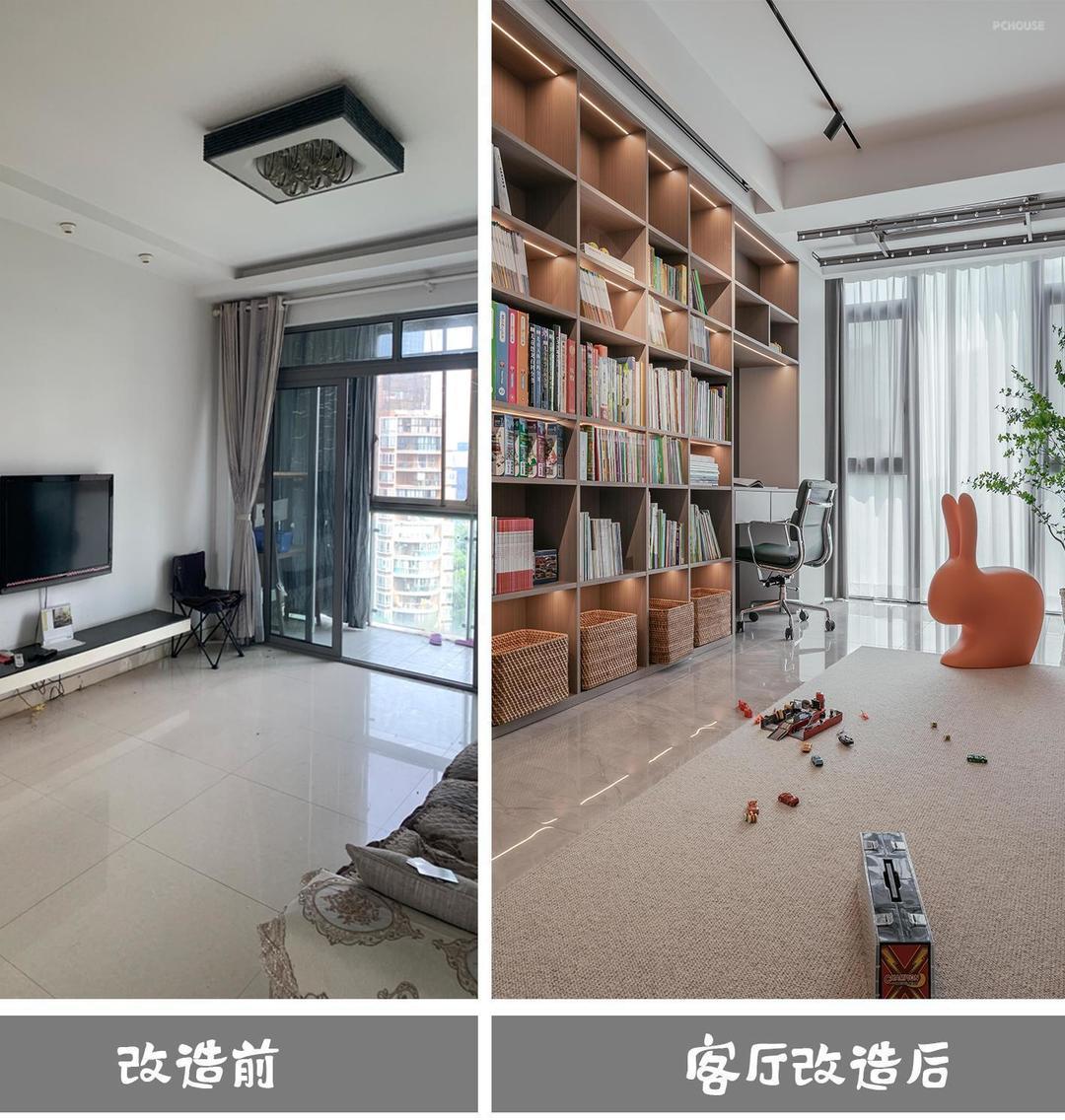 ●改造后的客厅由之前的功能单一与普通变成了色调温馨,功能丰富适合孩子玩耍阅读的多功能客厅
