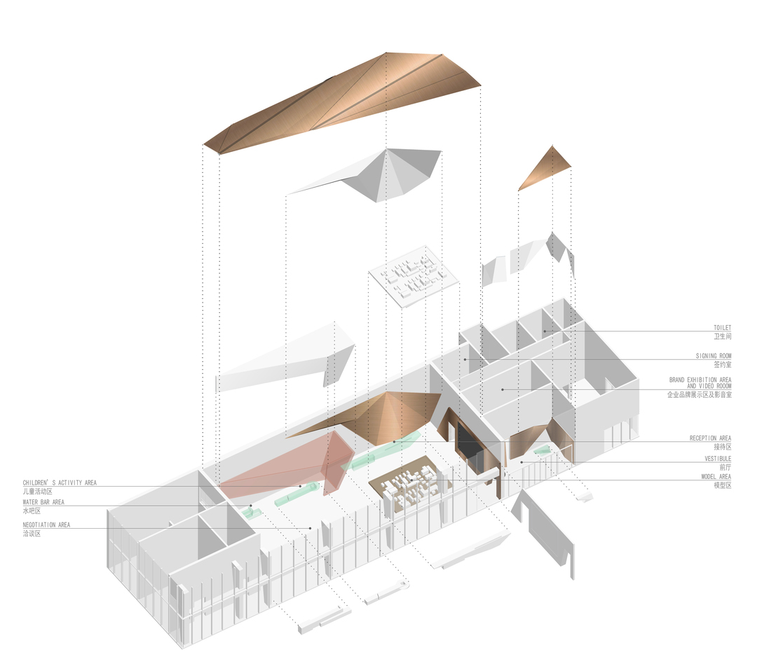 山脉与矿石共有的切割折线元素,幻化为空间的几何语言,配合空间游移的功能转换,形成传承性与社交性兼容的展示空间。