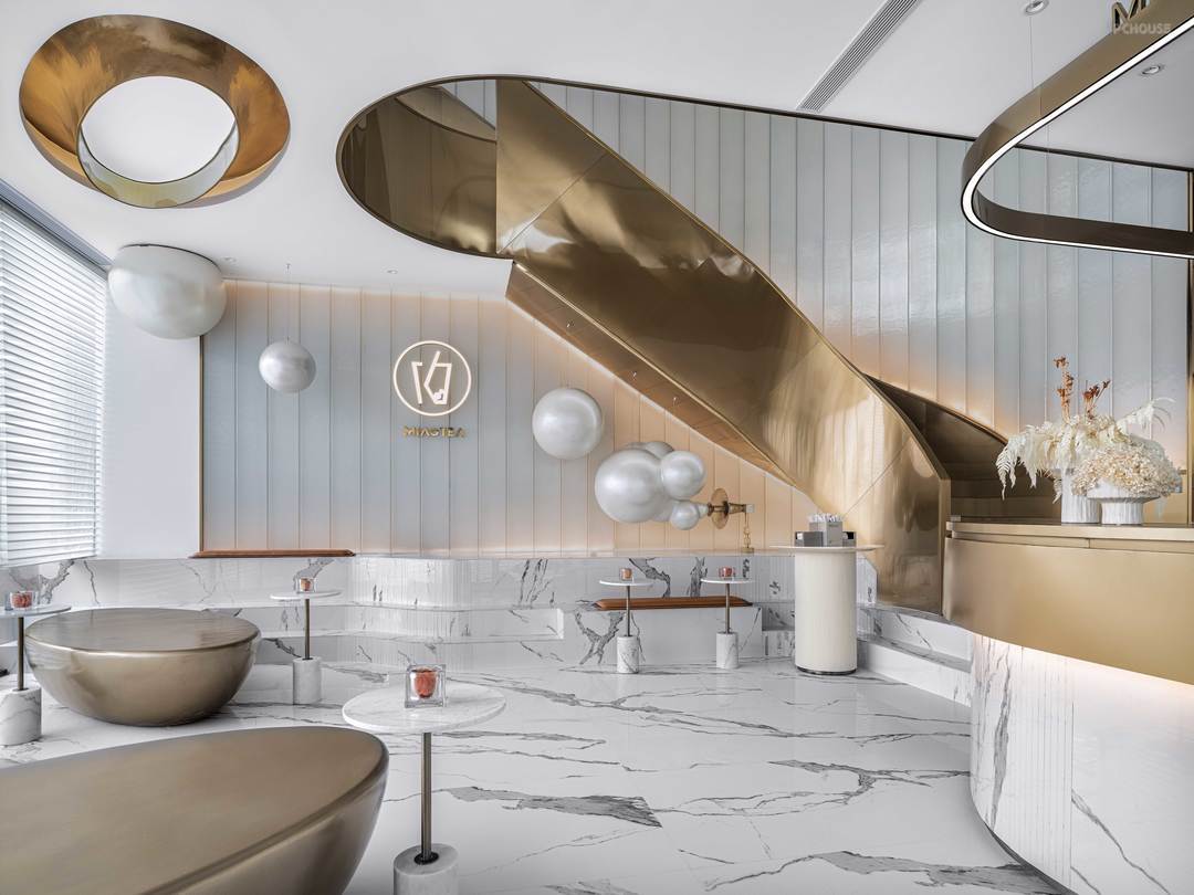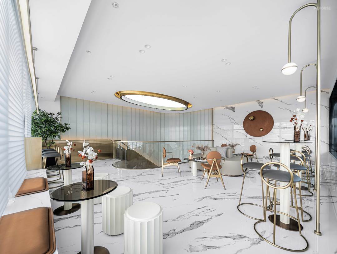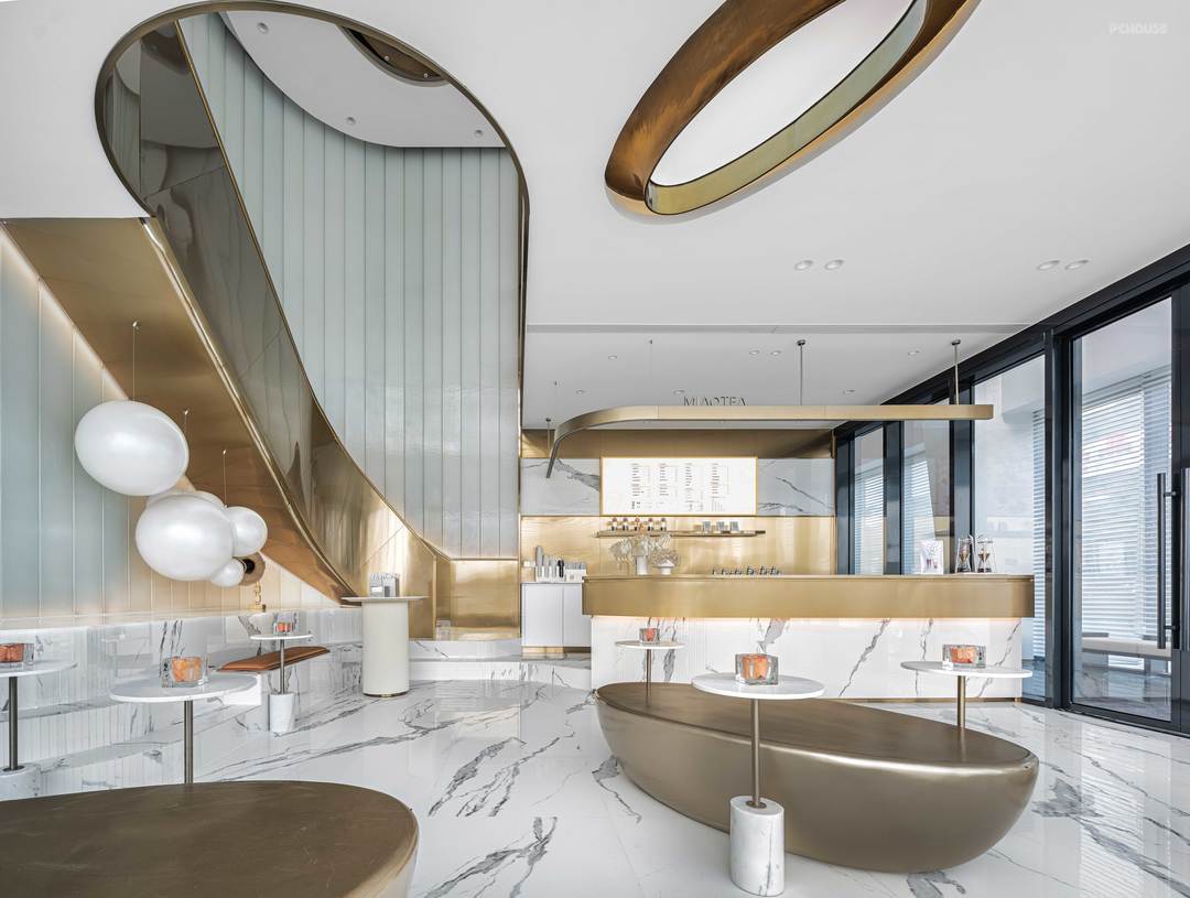 于是 ,铜锣湾广场应运而生。奥迅通过从功能满足到情感驱动,完成艺术与多元场景拼接,人性化地把奶茶店和美发沙龙融入售楼部。访者走进空间,可以一边享受着Tony老师的美发沙龙服务,一边喝下冬日的第一杯热奶茶。