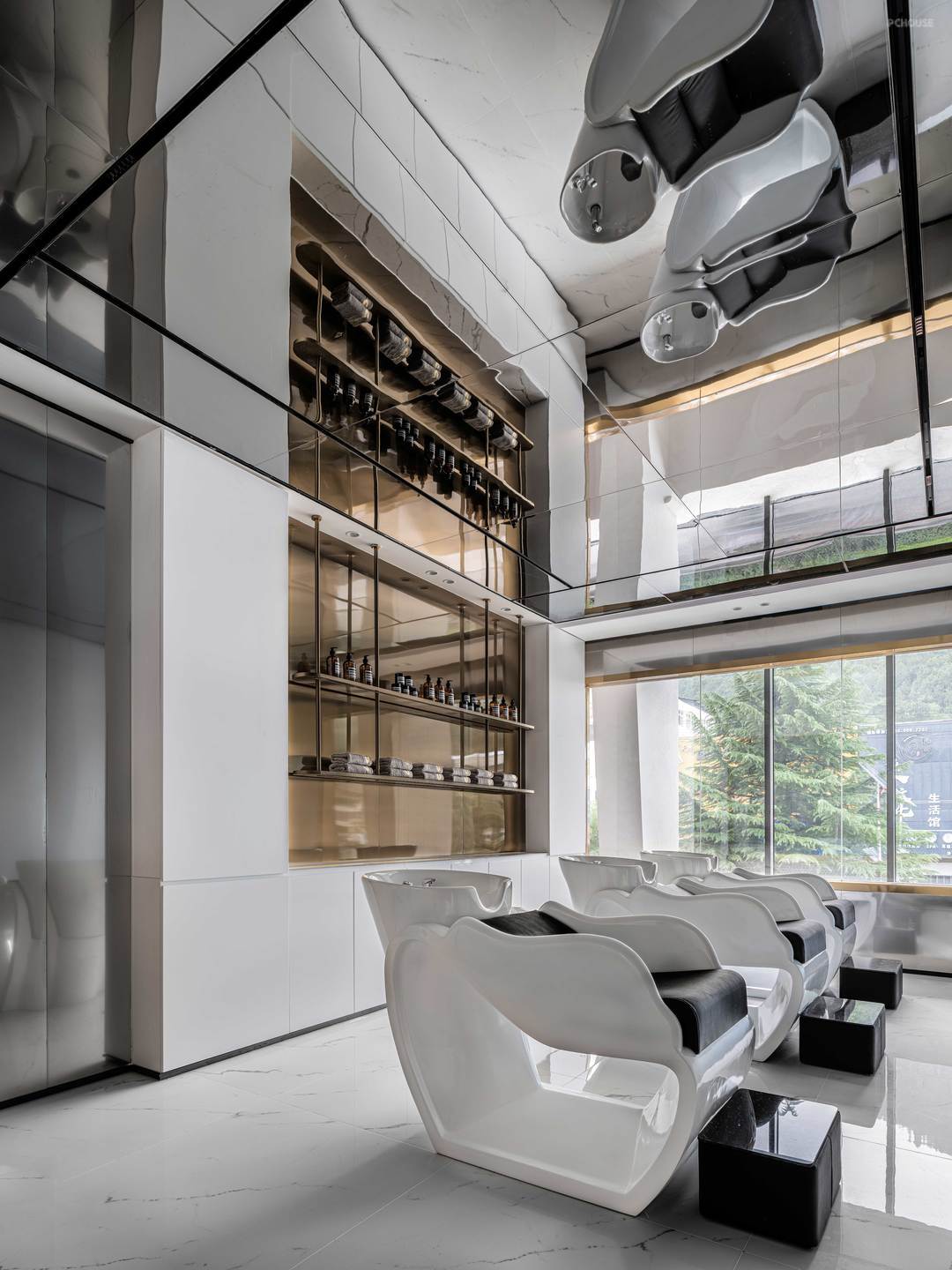 通过对顾客购买心理行为的思考,以及金属材料和玻璃比例的精准把握,另辟蹊径完成了对空间功能性、商品的展示性和服务属性的统一,使顾客达到对空间享受和艺术欣赏的交叉体验。