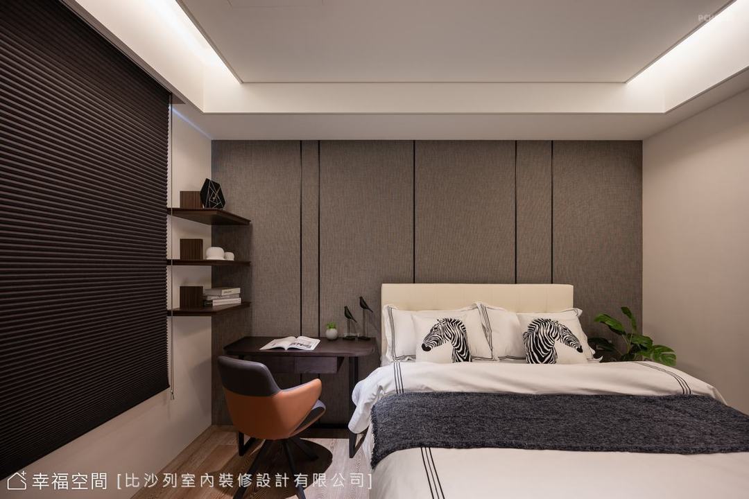 进入私领域,兼容了饭店式设计及专属个人风格营造,不仅提供饭店空间质感的舒适性,更细腻精雕床背墙设计,采用绷布结合异材质的铺排,营造出奢华质地。推开进入主卧空间的隐藏门,即能感受精致的舒眠氛围,并特别规划衣帽间,选用粉色布纹板的软式材质,为空间增添的温度和柔软度。在次卧空间使用深色皮革绷布,则细腻彰显居者的个人风格。张静峰总监强调,好的设计,一定要梳理居住者的生活轨迹着手,和屋主聊生活、品味、居住细节,融入居住者的DNA,为其生活创造出新的生活品味。