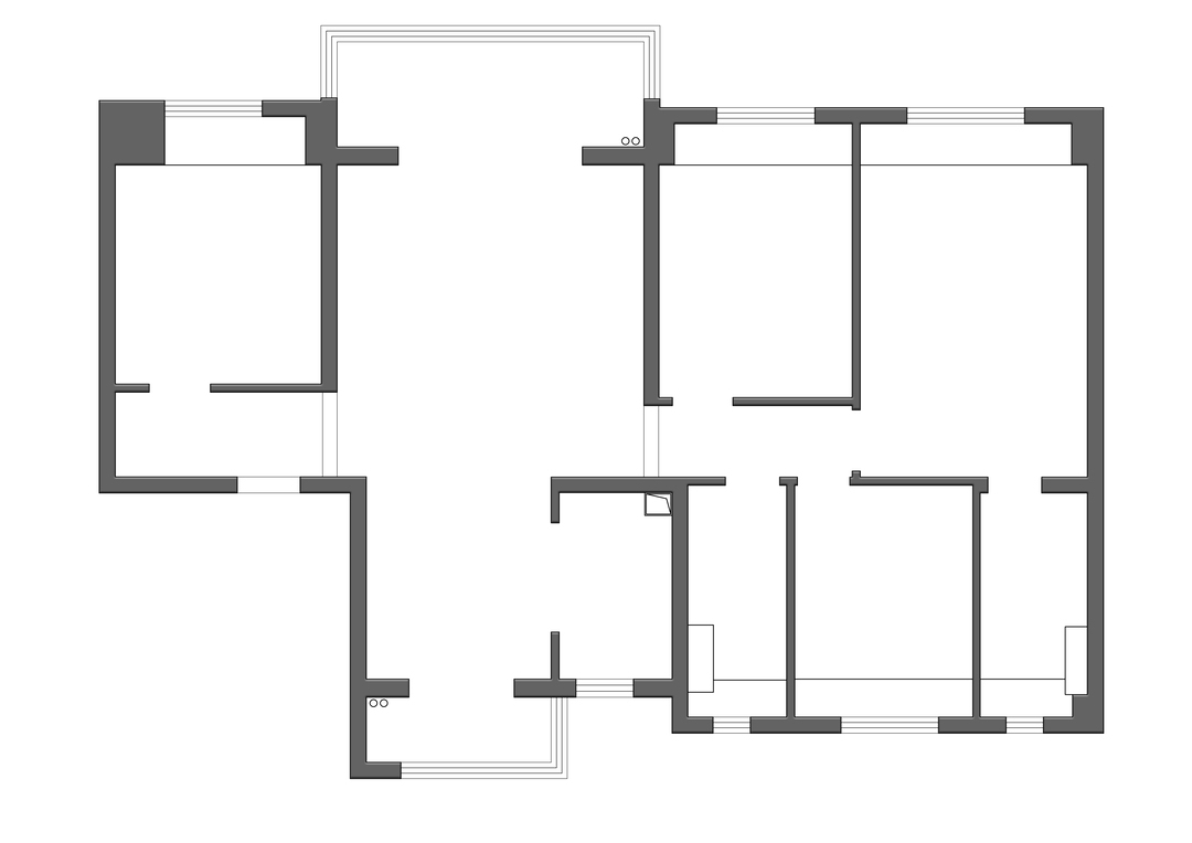 原户型是个较为规整的形态,缺点就是客厅面积小,厨房狭小闭塞采光不佳,主卧卫生间位置尴尬。屋主需要保留三房的使用功能,主卧、儿童房、次卧,女主人希望主卧有衣帽间,拥有浴缸的独立卫生间。所以可改性不大,在此基础上进行了局部优化。