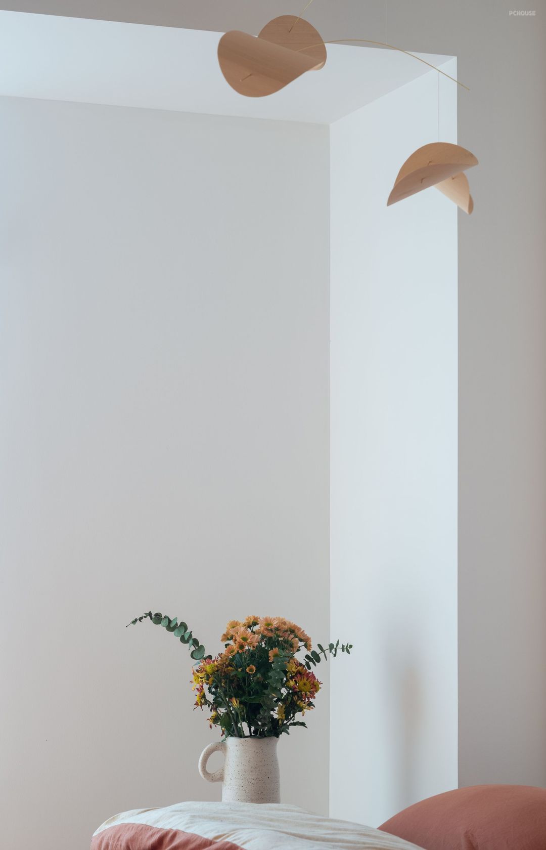 有一种质朴自然气息的客卧。悬挂在角落的漂浮平衡挂件我能盯着它看好久。