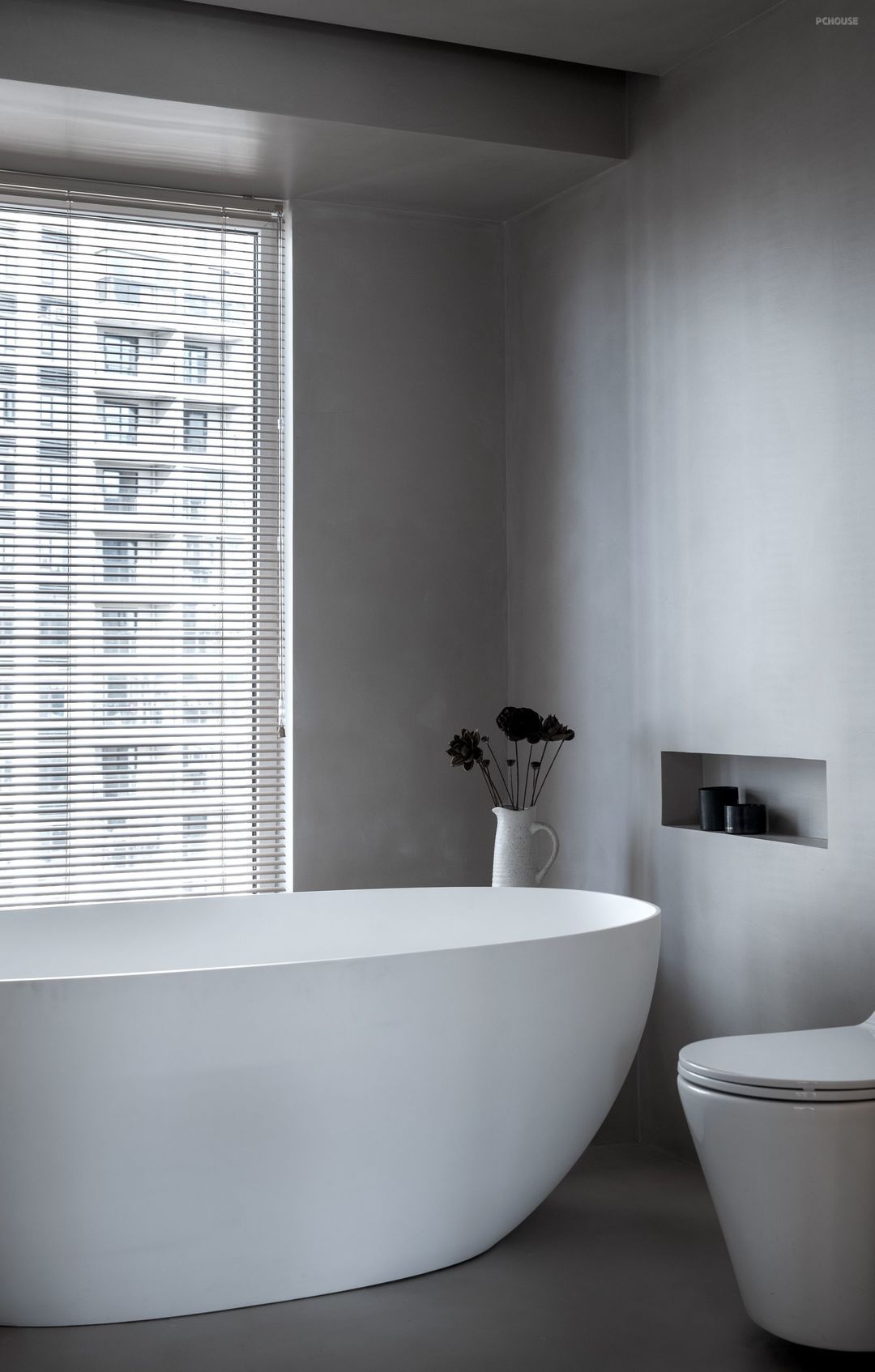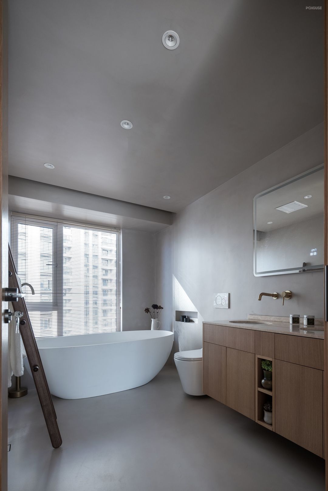 客卫同样采用了墙地一体的微水泥。