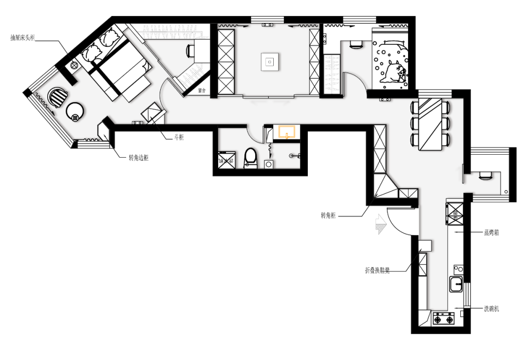 3、户型整体很像射钉枪,导致主卧空间尴尬,希望可以更好利用