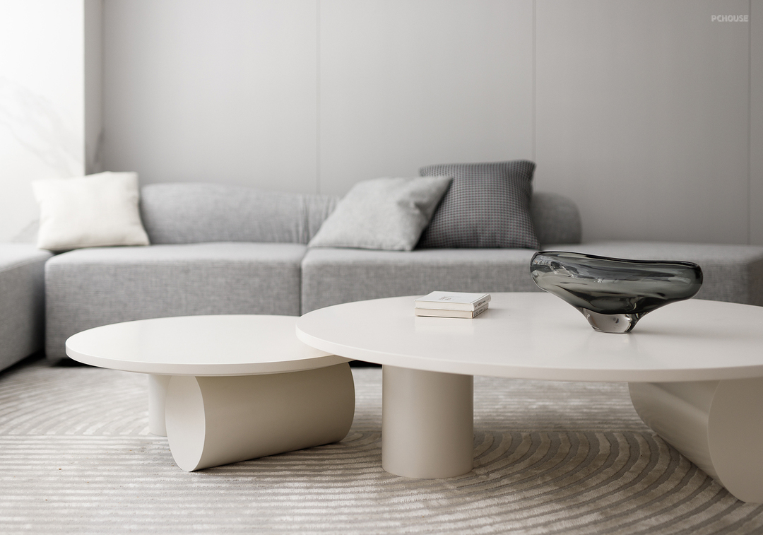 灰白色的主体空间在原木色点缀下,给人温馨暖意感。