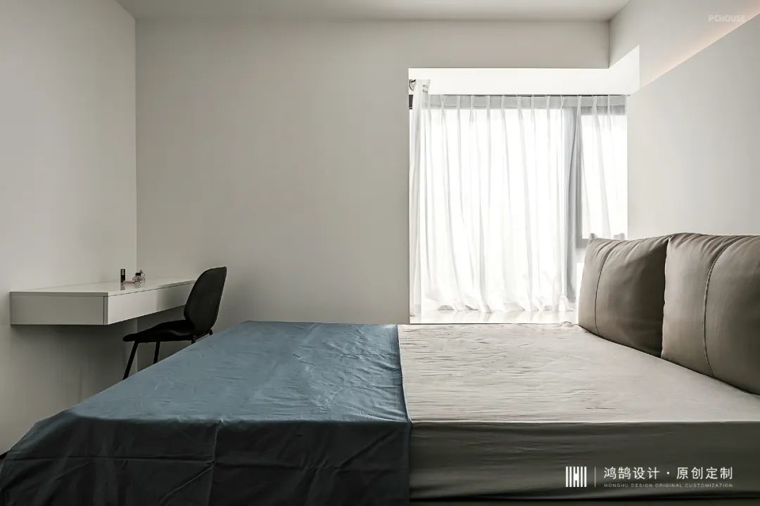 原卧室空间偏小,在满足业主需要1.8米大床和独立衣帽间的前提下,将床靠边放置,释放出更大的活动空间。