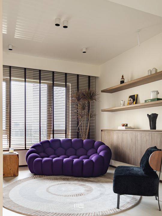 软皮沙发和地毯,书房同时也是一家人的休憩娱乐空间,享受另一番舒适生活的写意