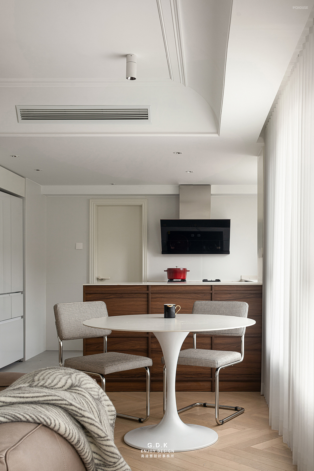 对审美和个性化的表达我们的业主也有着自己的定义和严苛的要求,喜欢法式的随性、自然,美式的现代简约,100%拒绝一切浮华与流行的堆砌,家不需要太满,希望把更多的空间留给时间,享受慢慢积累的过程。让居者保持与空间同频,让每一个日常都呈现出生动自然的模样,这也是本案设计的初心。