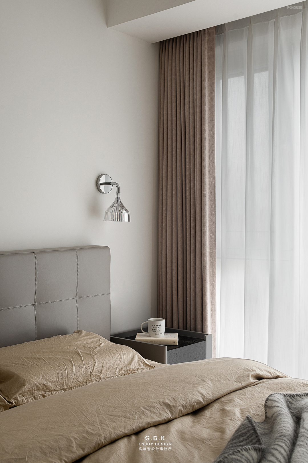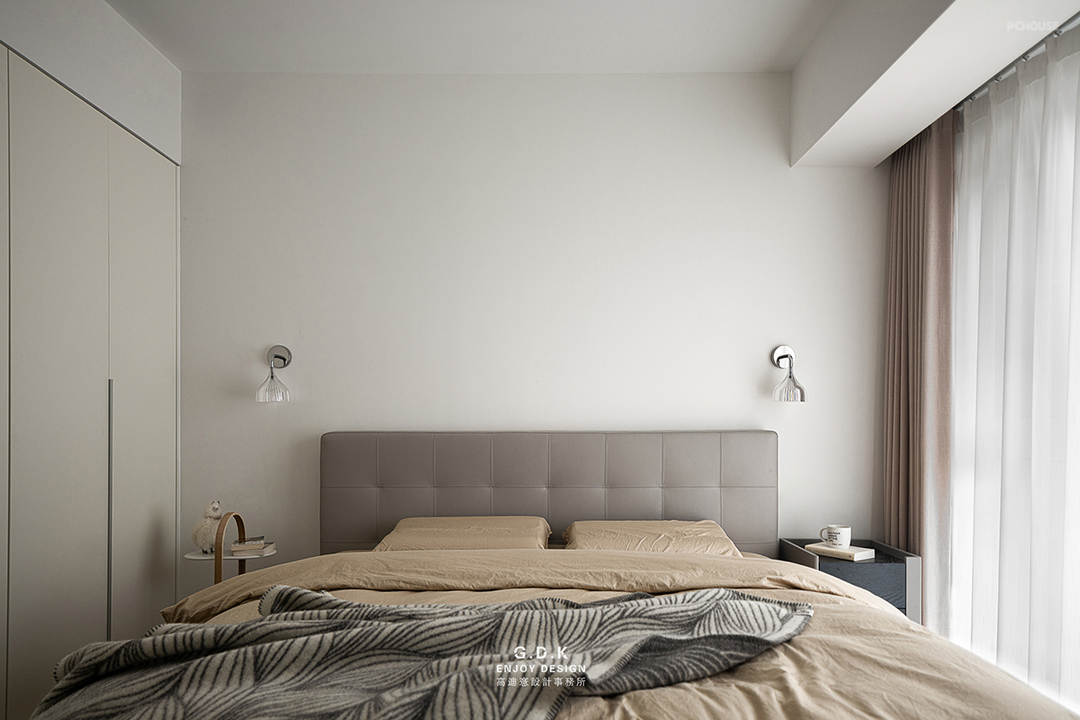 主卧延续了客厅柔和的色调,干净的线条,明快的氛围,没有刻意的堆砌,一切都是最舒服自然的状态。
