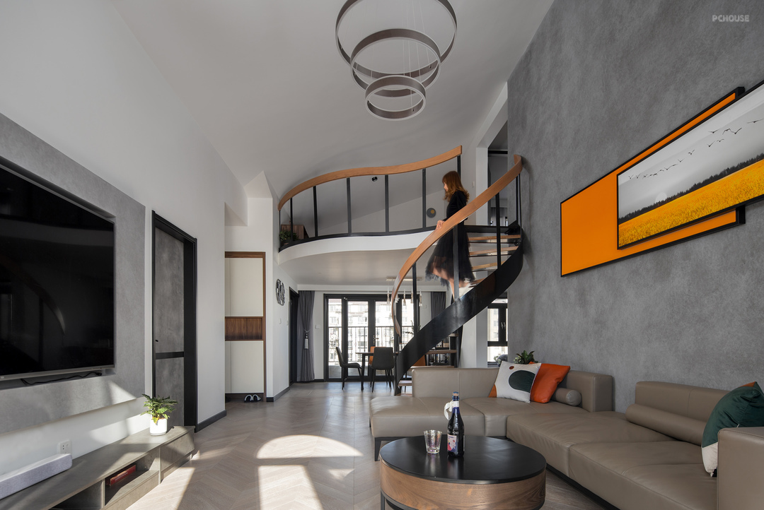 2.优化整体空间动线,在客厅位置增加螺旋楼梯