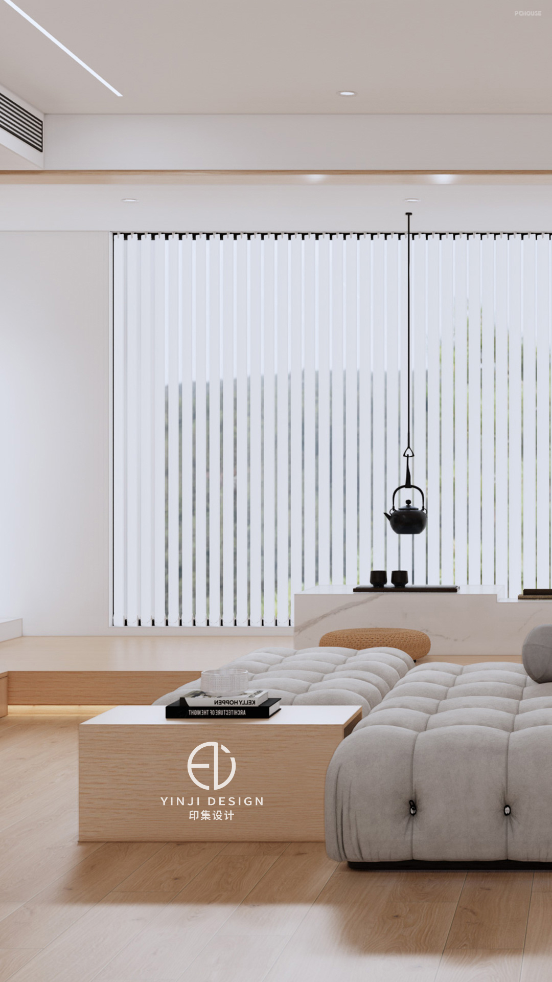 蒲团、茶壶、绿植成为大落地窗最优雅的点缀。由近及远,层次分明,简约而不简单。