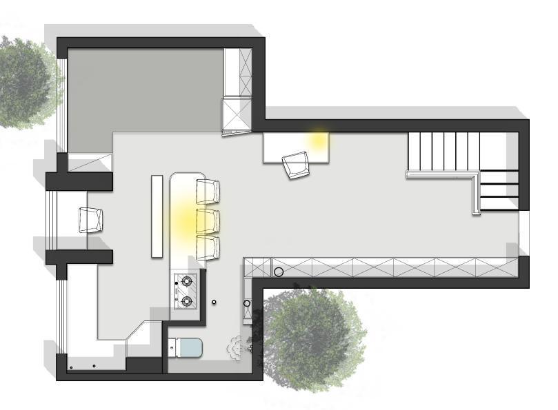 2、一层的厨房面积较小,将厨房改为开放式,餐桌和灶台相连接增加了厨房实际操作面积,也不会让厨房觉得太过拥挤。