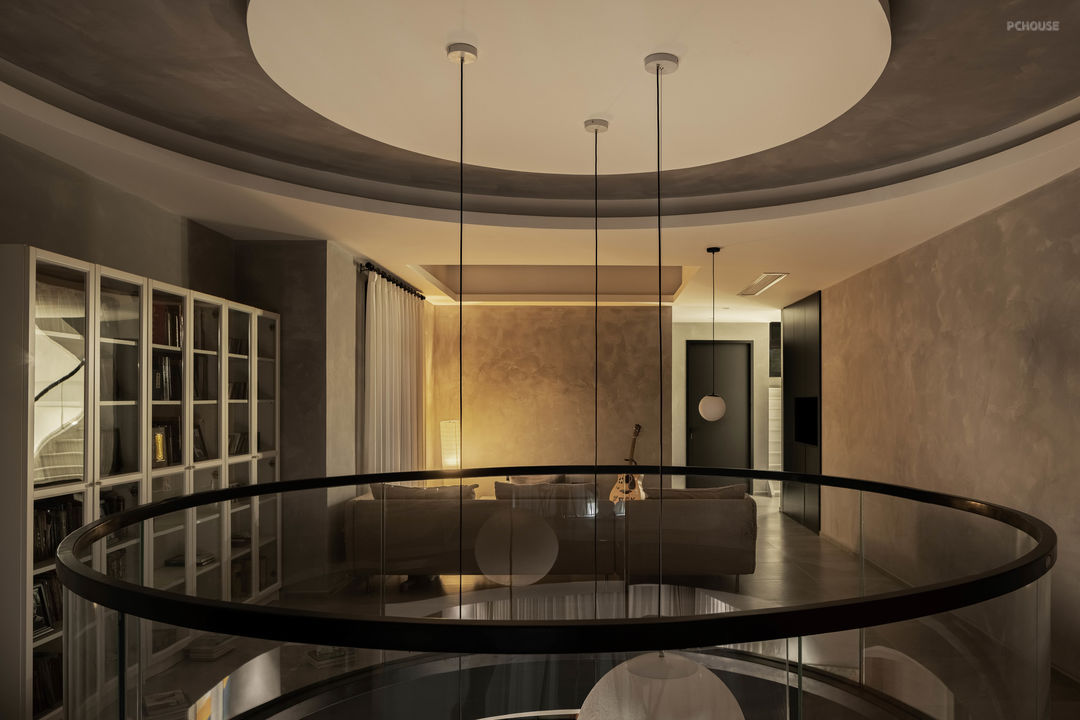 挑空处精心设置的吊灯,犹如皎洁的明月,含蓄、巧妙地为空间褪去冰冷外衣。