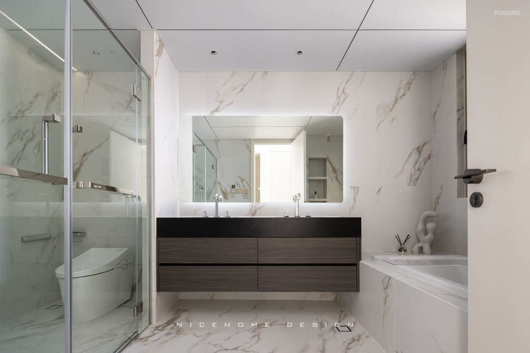 主卫空间则由白色主导,更加放大了宽阔的视感。酒店式分离布局一体打造,兼具品质感与功能性。