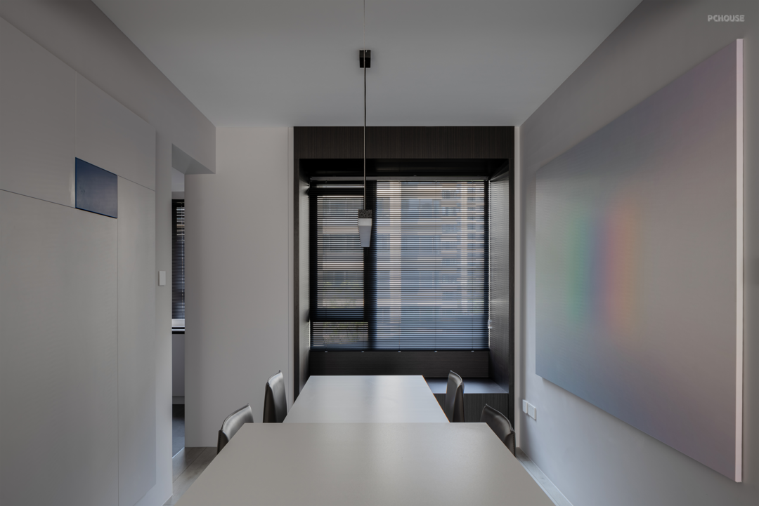 设计师将空间内的材质、色彩都压缩到精华,使得空间之间可以彼此串联、呼应,让110㎡内的每个角落,对于屋主来说,都是可触及、可实用、可观赏的。