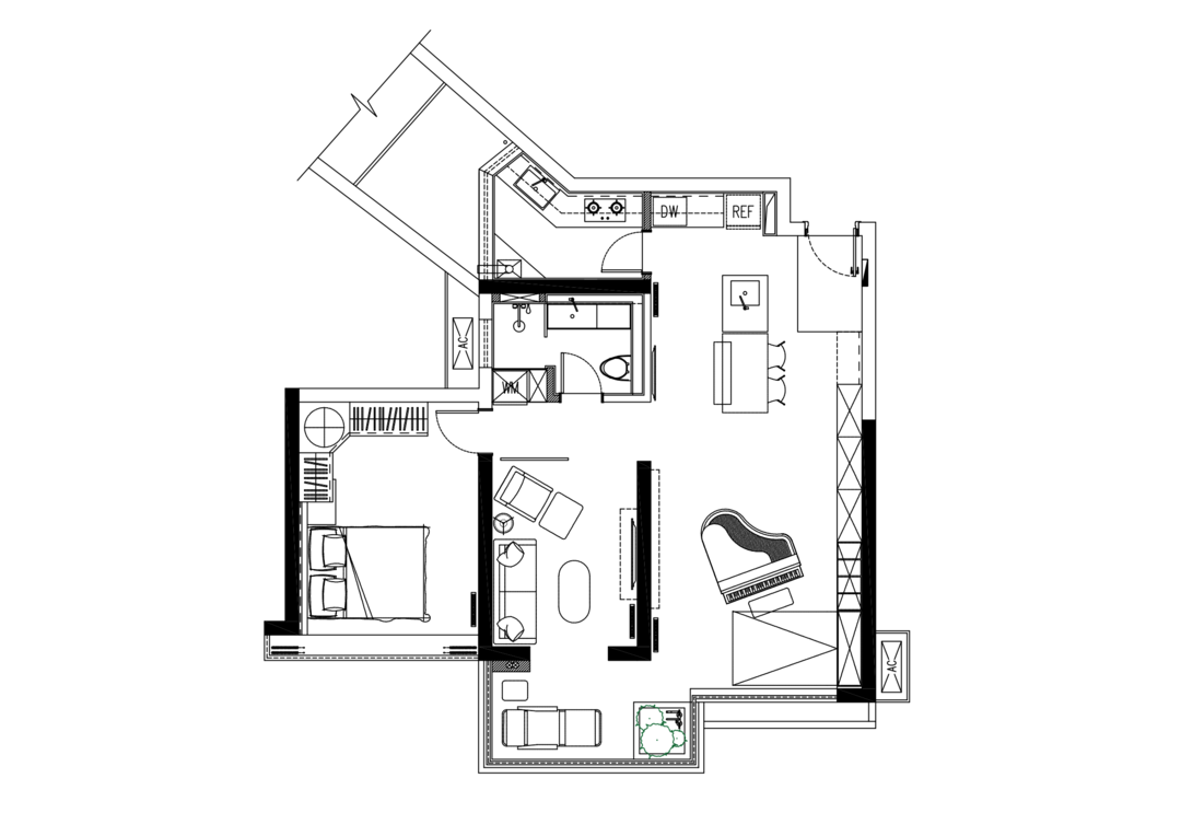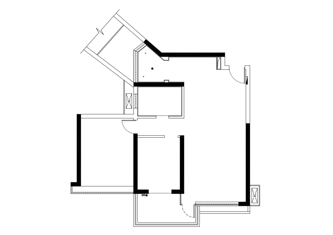 原始户型朝西,结构采光通风都较好。生活阳台异形墙体,且外部是消防平台无法利用,烹饪+清洗功能集中于此非常逼仄。其次,该楼盘奇偶层的阳台为左右错层,本案阳台位于次卧外面。