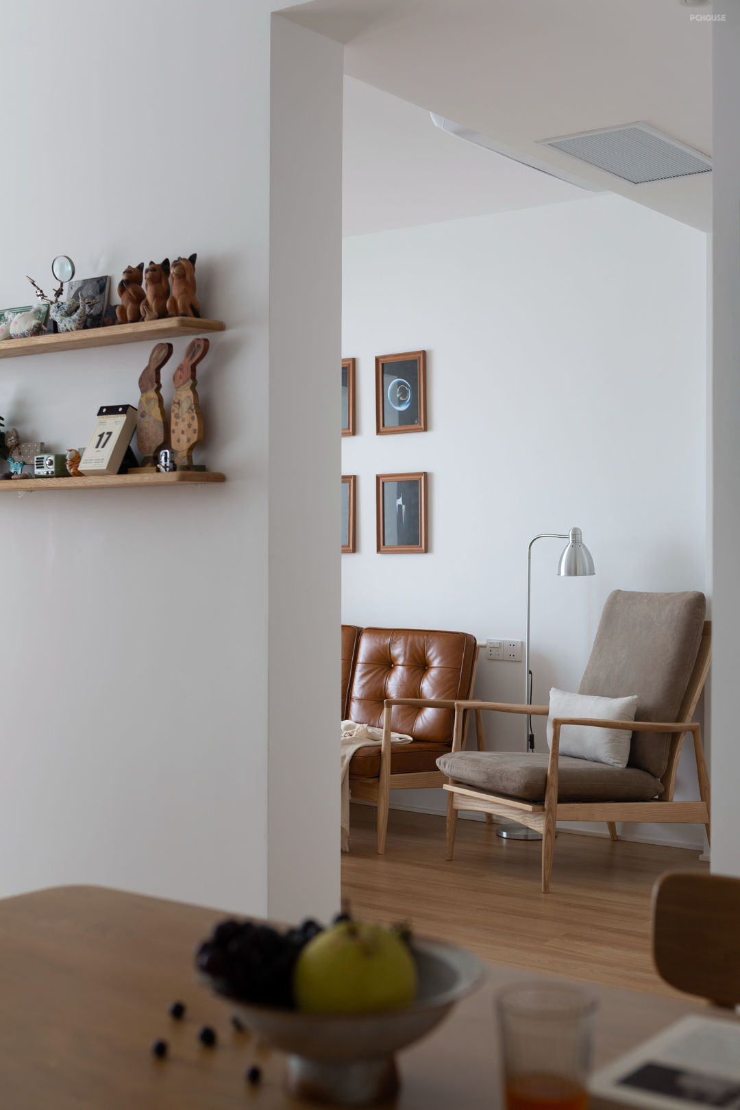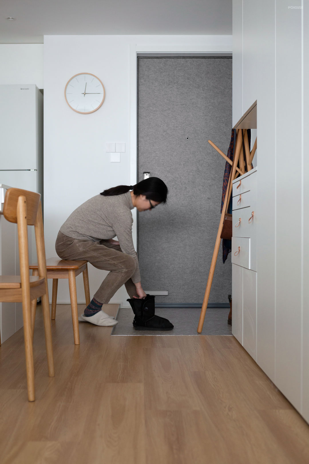 屋主的腰不好,打扫起来会比较费劲,因此在挑选家具、软装时,都选择了细腿的,方便扫地机器人通行,不留卫生死角。