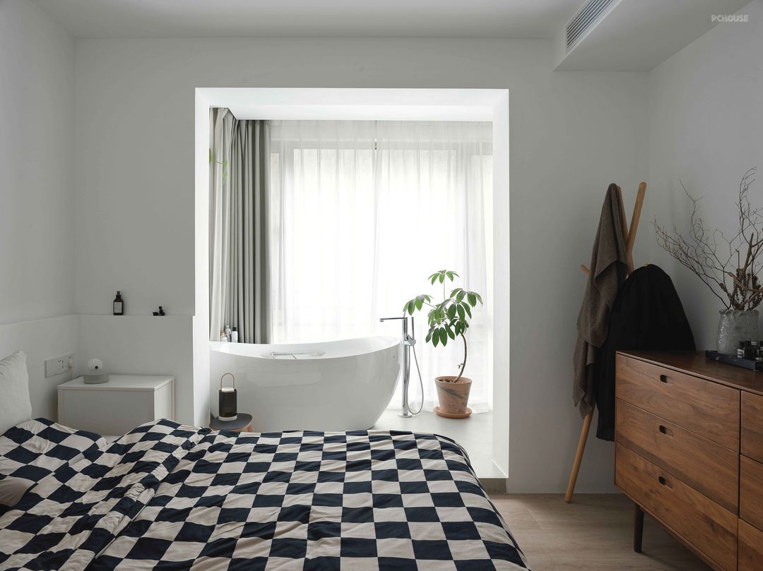 2,次卧区域通过区域略微加大,通过与衣帽间共用移门引入光线