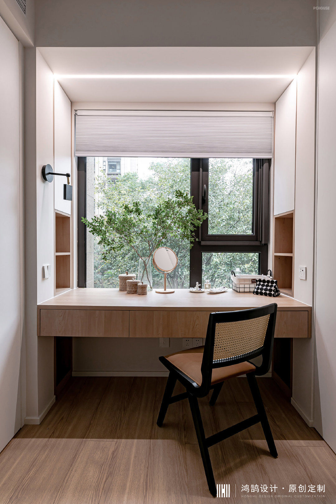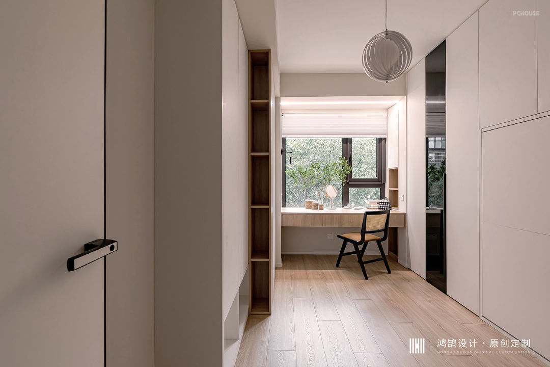 5、次卧敲掉原有飘窗,做了梳妆台,部分柜体承担了翻板床的功能,父母可以临时休息;