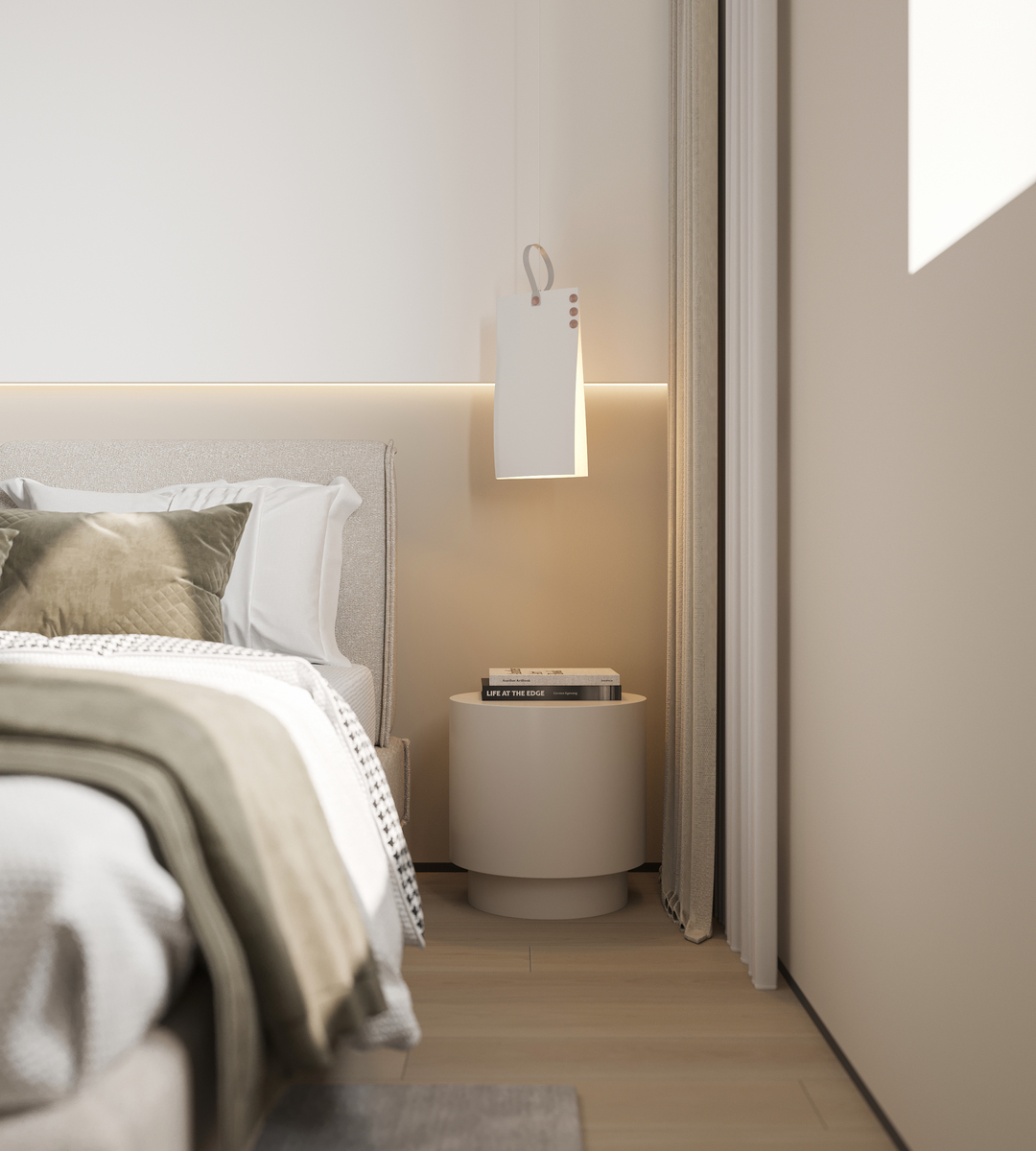 自然光源和室外光感靠近,展现出卧室朦胧美感,贴近自然舒服的感受。