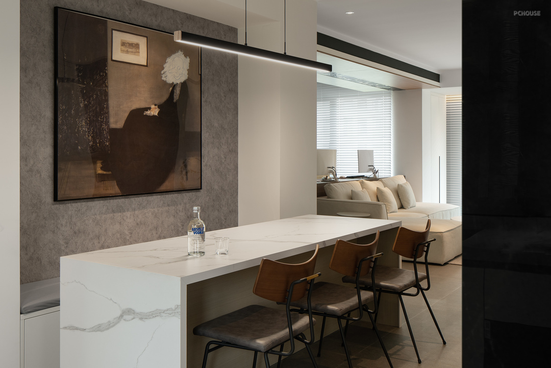 前言: 屋楼层位于4楼,原始采光不算太好。我们用纯粹且统一的白色,让空间显得更开阔敞亮。来解决采光的问题,并且屋主也喜欢极简的元素与氛围。