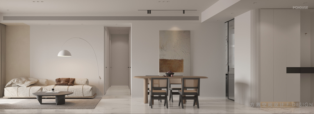 客餐厅一体的设计,让空间更为开阔,自然光线也能进入到餐厅,加强了餐厅的采光,打造温馨的就餐氛围。