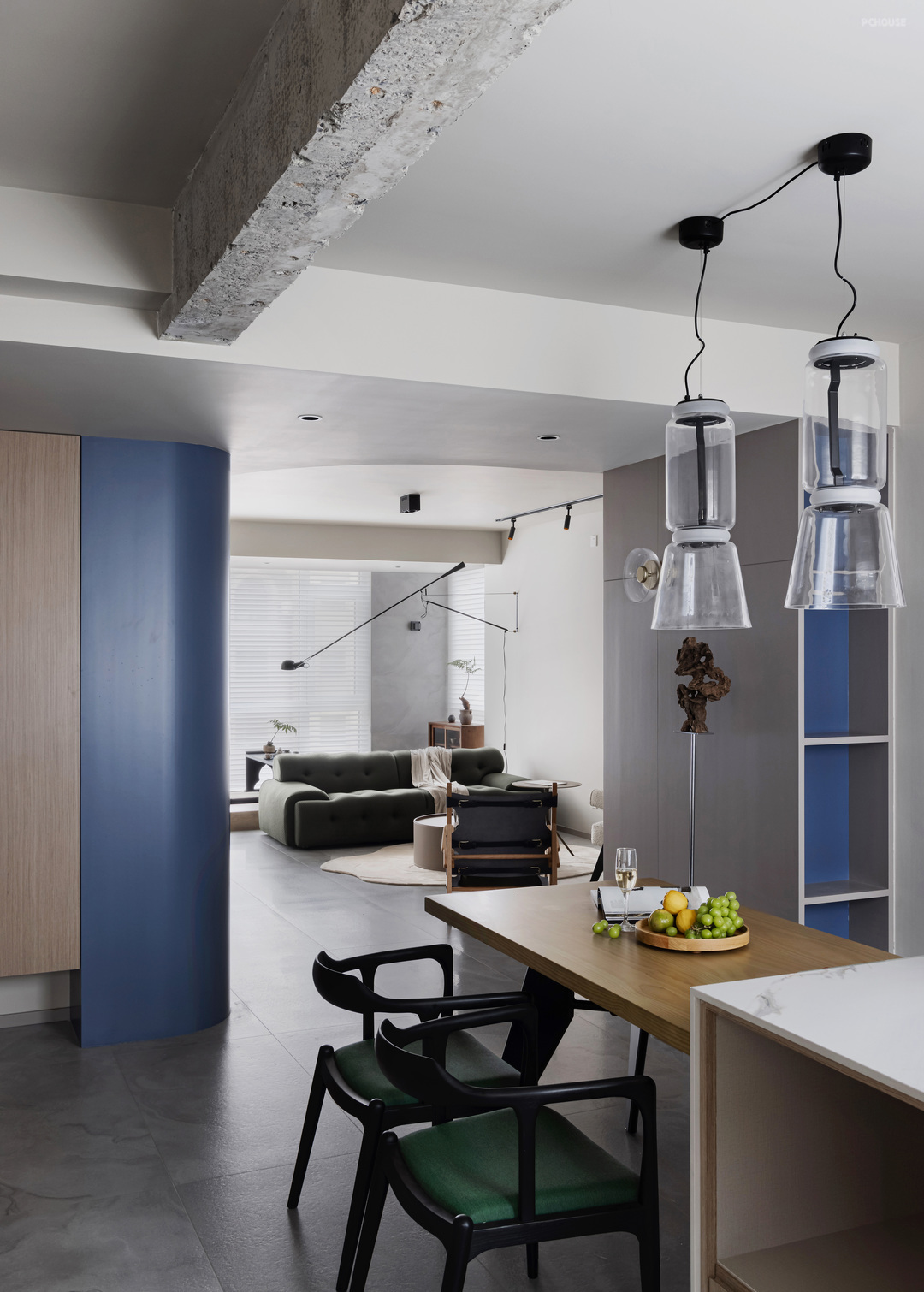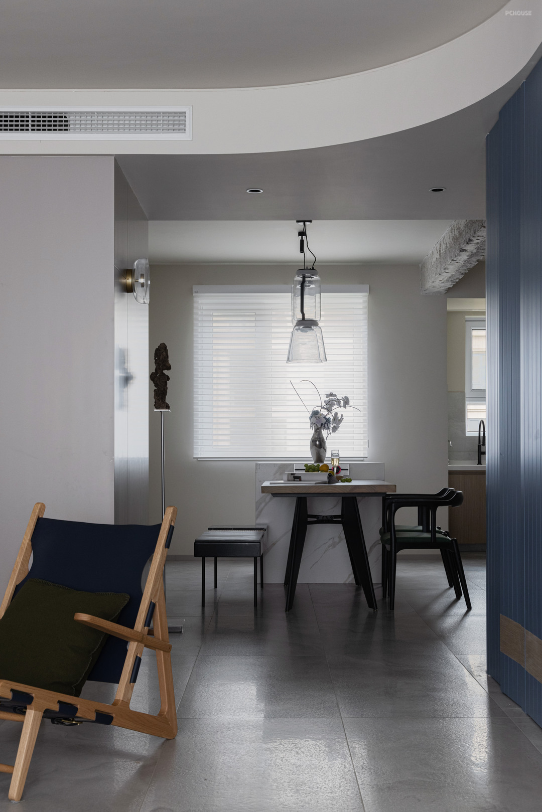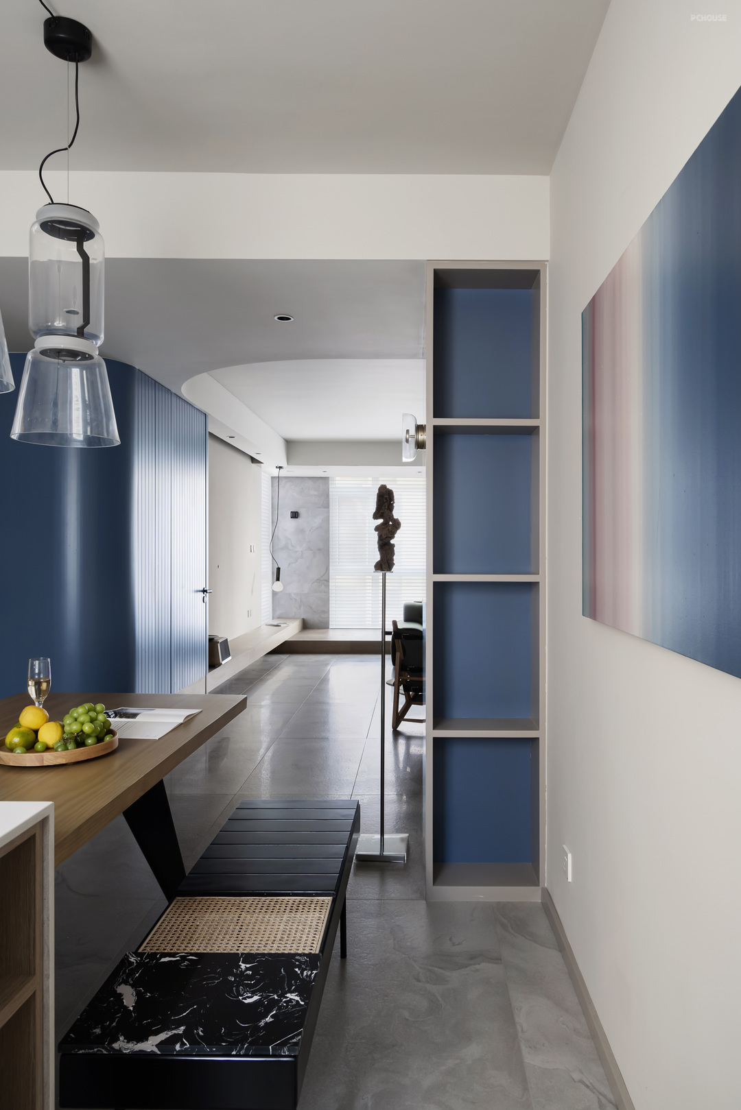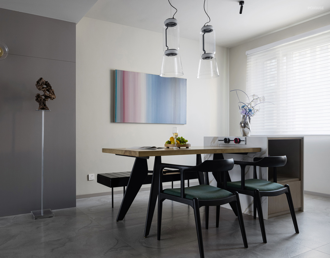 5,设计一个好看的房子不是难点,难的是如何在财米油盐中找到高于烟火气的精神诉求。就像本案玄关的太湖石,餐厅的艺术挂画,有坚强的性格与丰富多彩的世界观。才是本案想要表达的“设计”。
