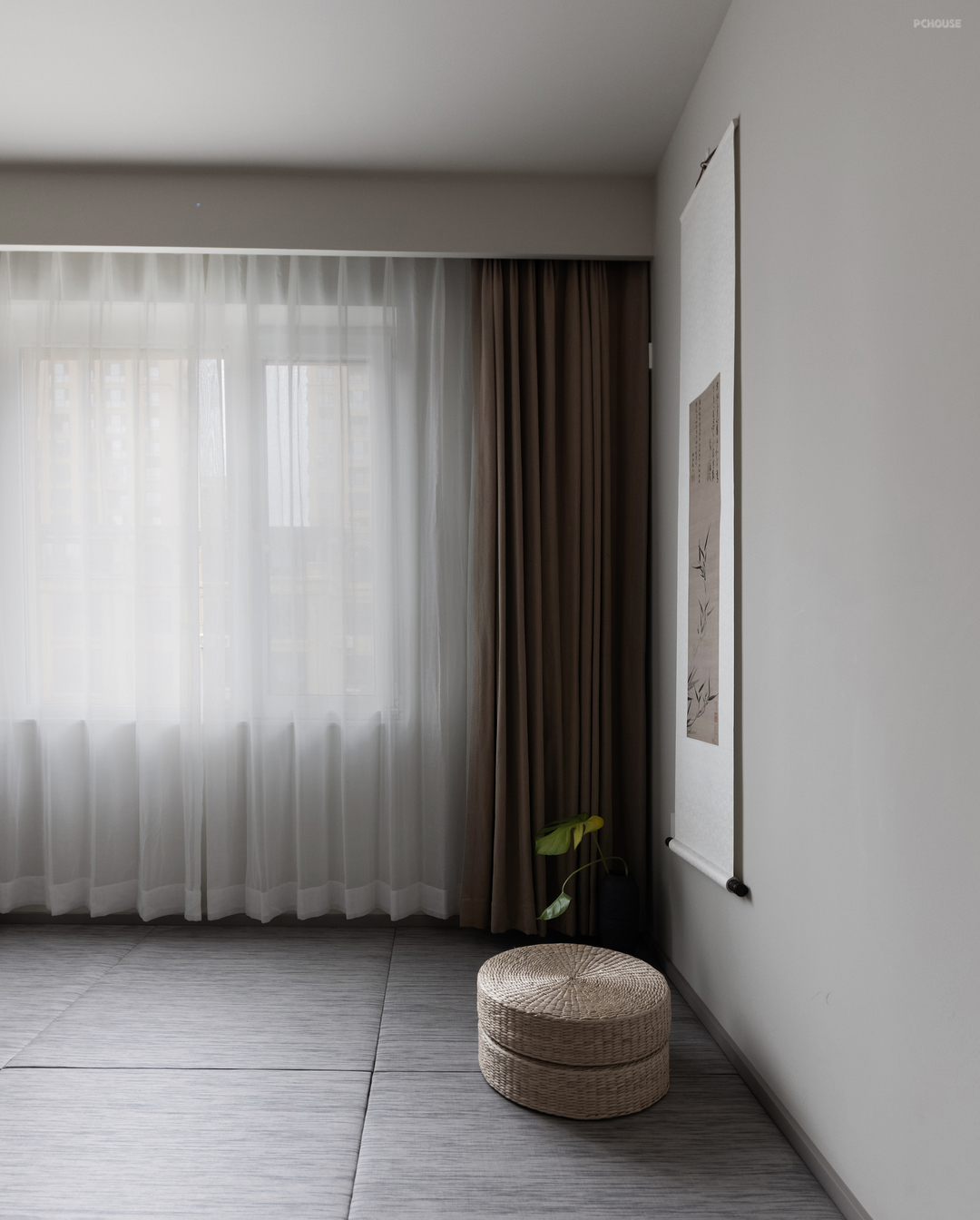 4,北卧室的卷轴挂画,正适合这个空间。让这个空间更显安静。三:设计的意义