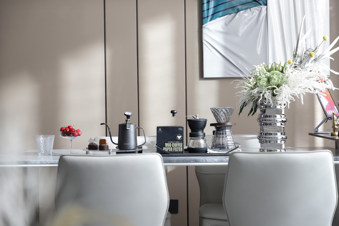 设计师从颜色的搭配和材质的搭配细节处还原了住户的高品质生活,爱摄影、泡咖啡、烘培美食、装饰艺术,和孩子一起玩积木拼搭游戏,在这里定格理想生活。