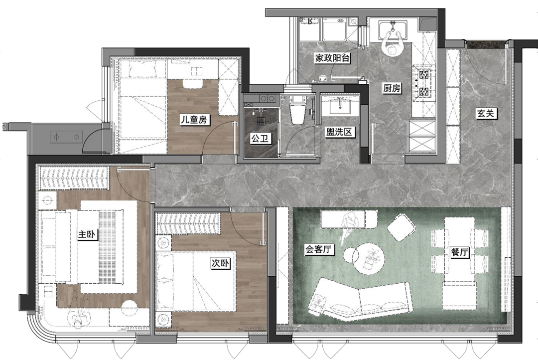 客厅作为家庭生活的主场,也是主人品位的试金石,以简洁的灰色调作为主色调的运用,简洁大方、轻奢质感。