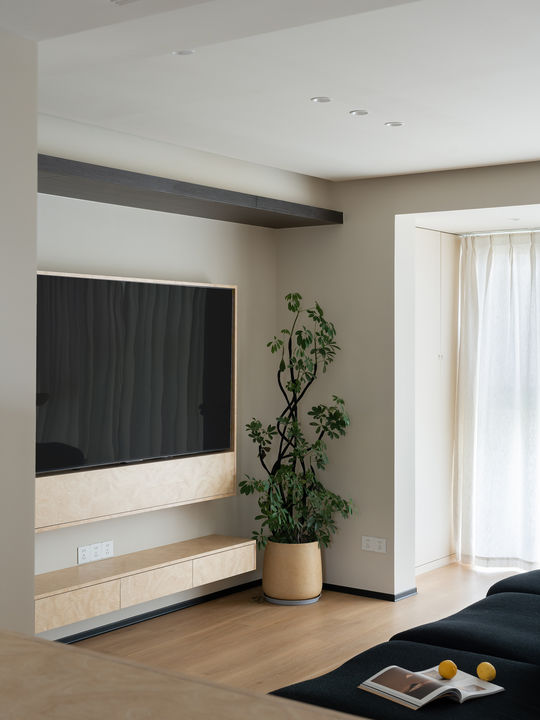 137㎡极简原木 | 通透布局+温馨色调,电视墙成了点睛之笔!
