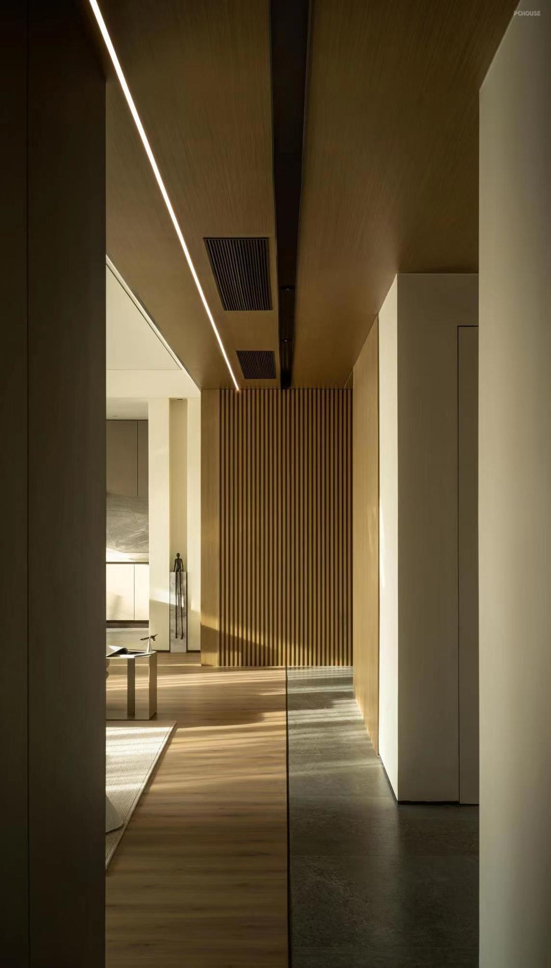 通过点、线、面的穿插、统一,构建起空间的质感与诗意,呈现丰盈温润的空间观感。