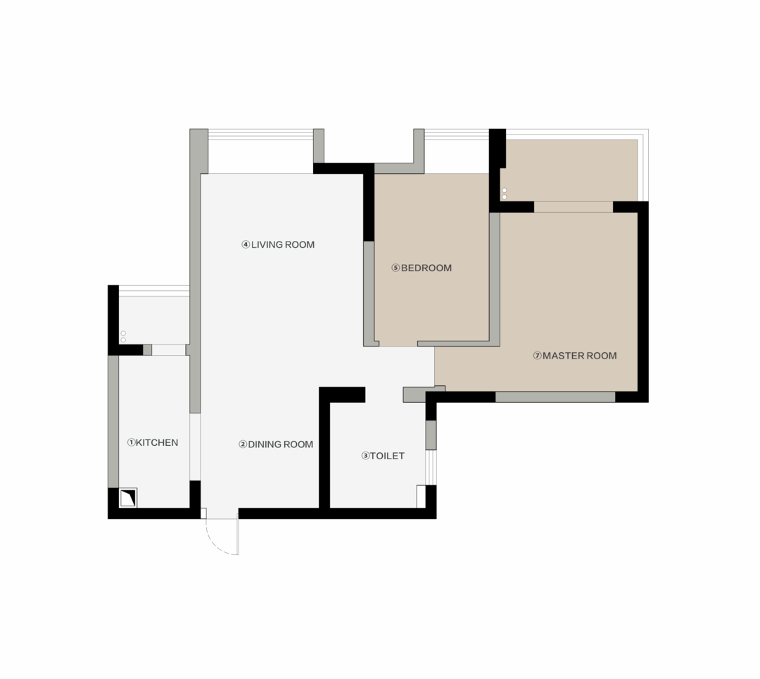 3 拆除主卧入门墙体,更换为玻璃推拉门,加强与空间之间的互动关系