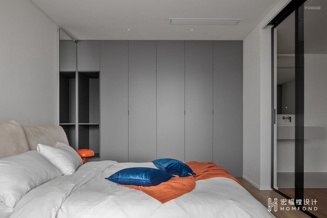 打破感知边界,开合之间形成视觉上的快速转换,摒弃所有不属于居住者的无意义陈设堆砌,为他还原最单纯的功能延伸与空间秩序。
