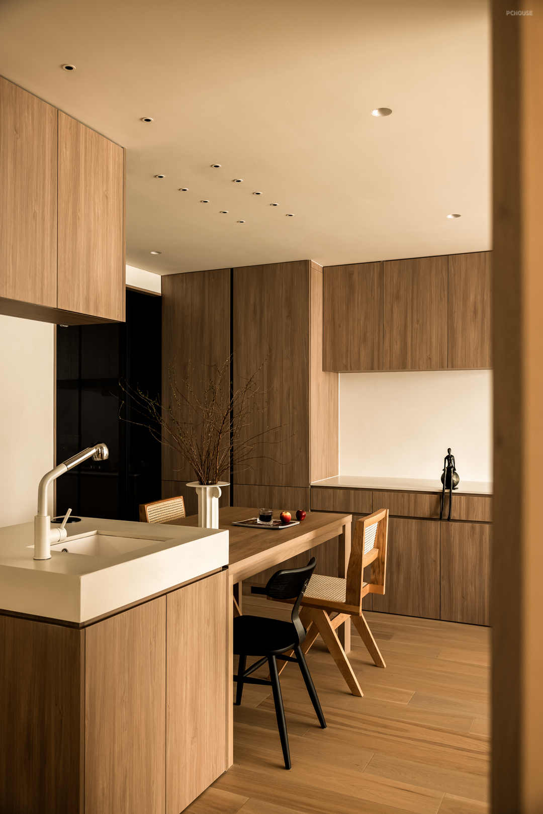 在去除多余的装饰和造型后,整体空间都是用很干练的线条来表达。