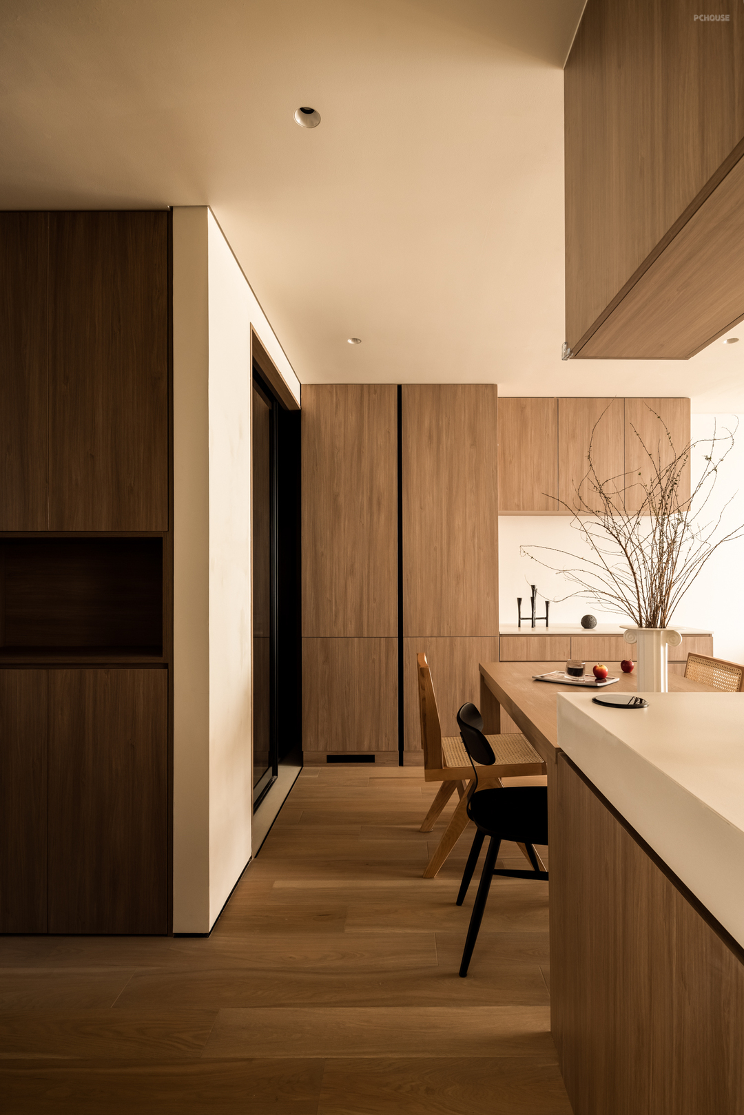 餐厅和中岛环形动线设计,将家庭交流中心从客厅引入餐厅,提升客厅、餐厅、厨房的互动性,空间之间有了交流,也让空间更通透。