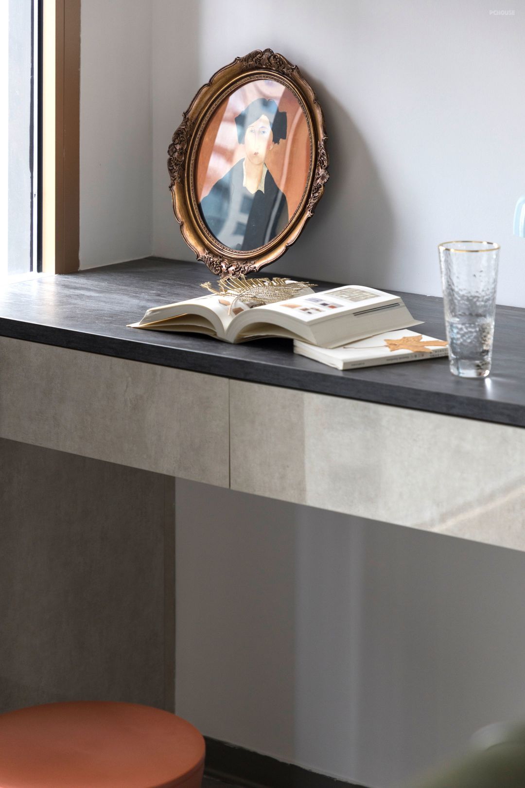 客厅阅读区靠近窗户,窗外是一条静静流淌着的河流,聆听水声,感受岁月静好。