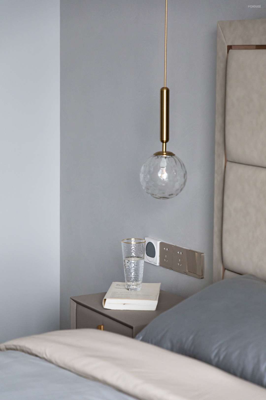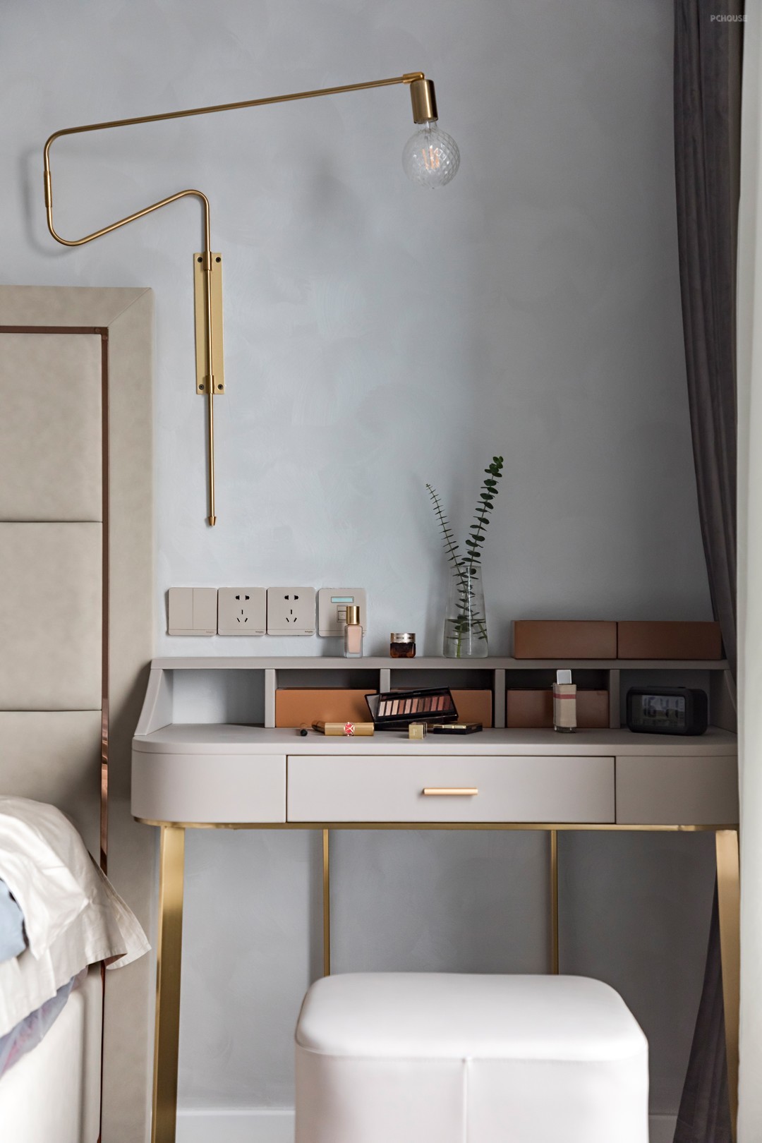 香槟金的床头柜置于空间仿佛精灵一般。