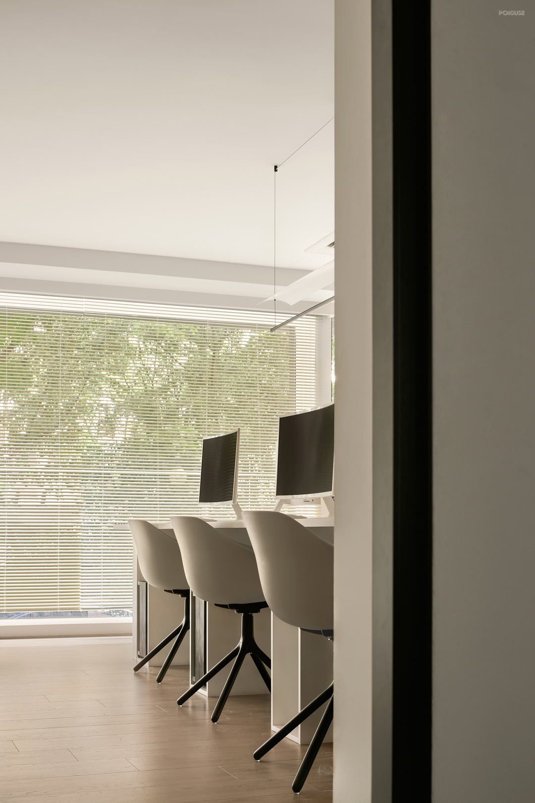 办公区大面积落地窗的运用,搭配香格里拉窗帘,从外向内引入更多的自然幻想。
