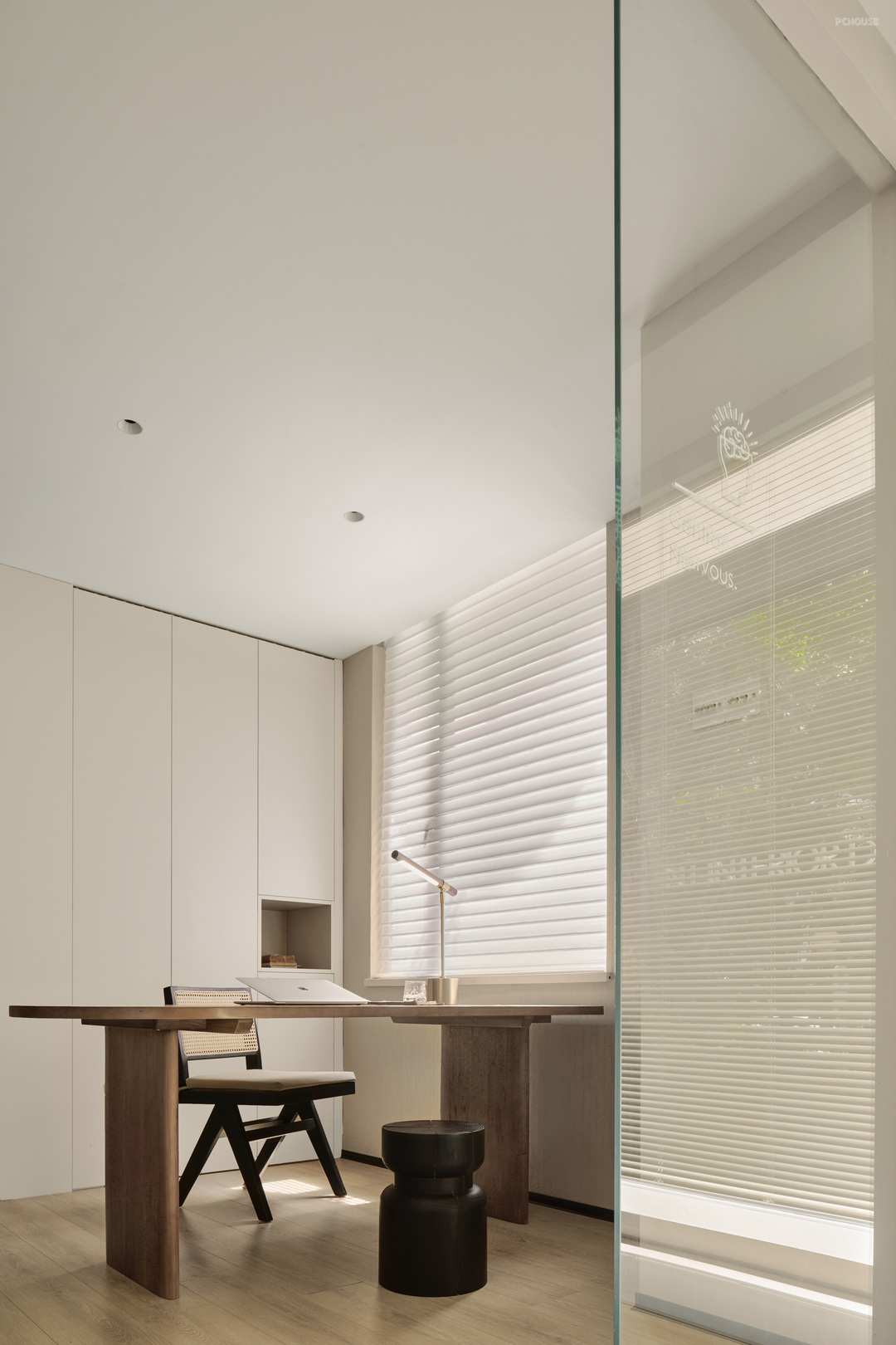 墙面设计与办公区一致的窗户,下面加装按压式抽屉增强收纳。