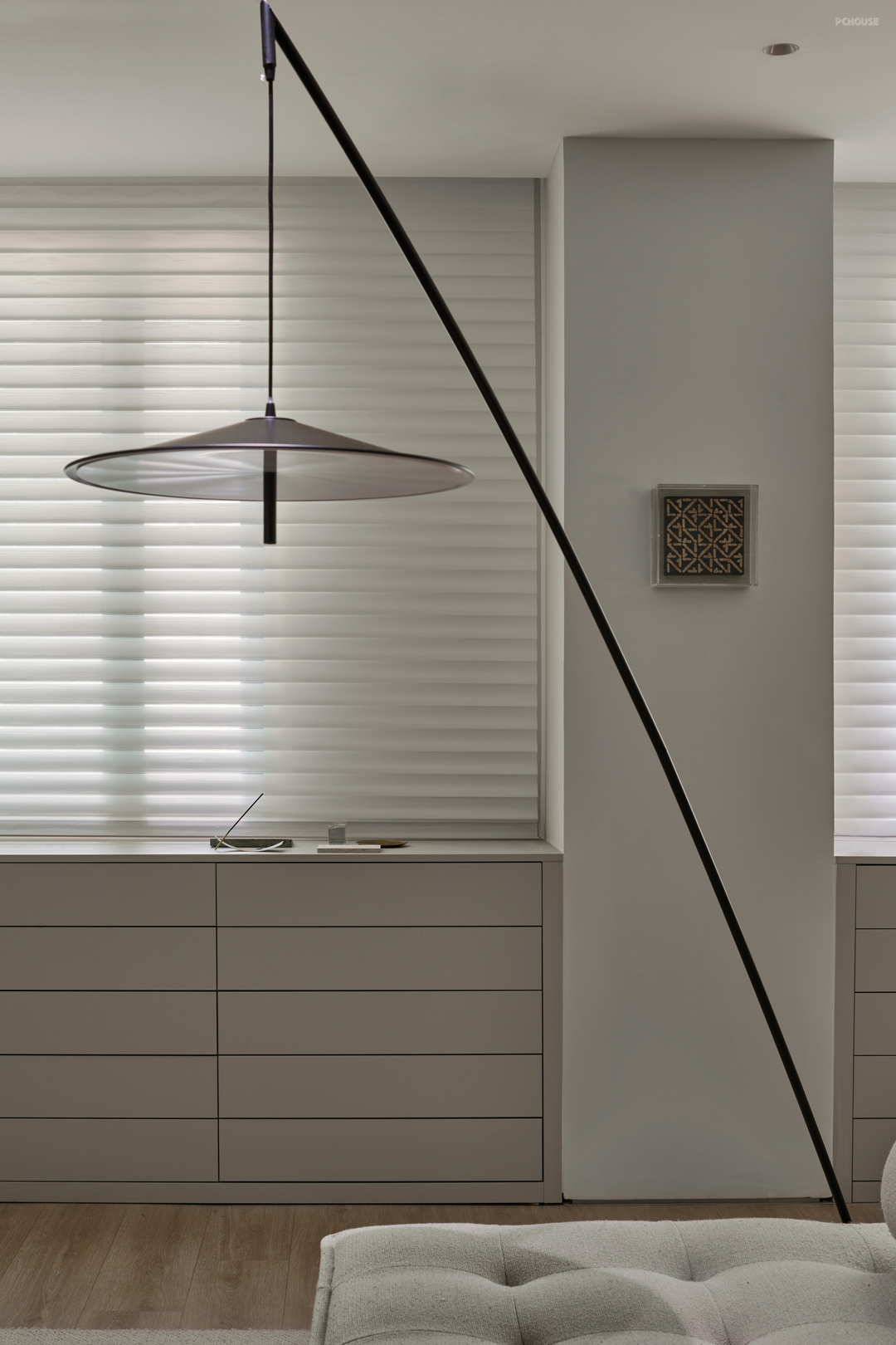 取消传统资料柜,选择安装到顶的按压式闭合隐藏柜,满足收纳。