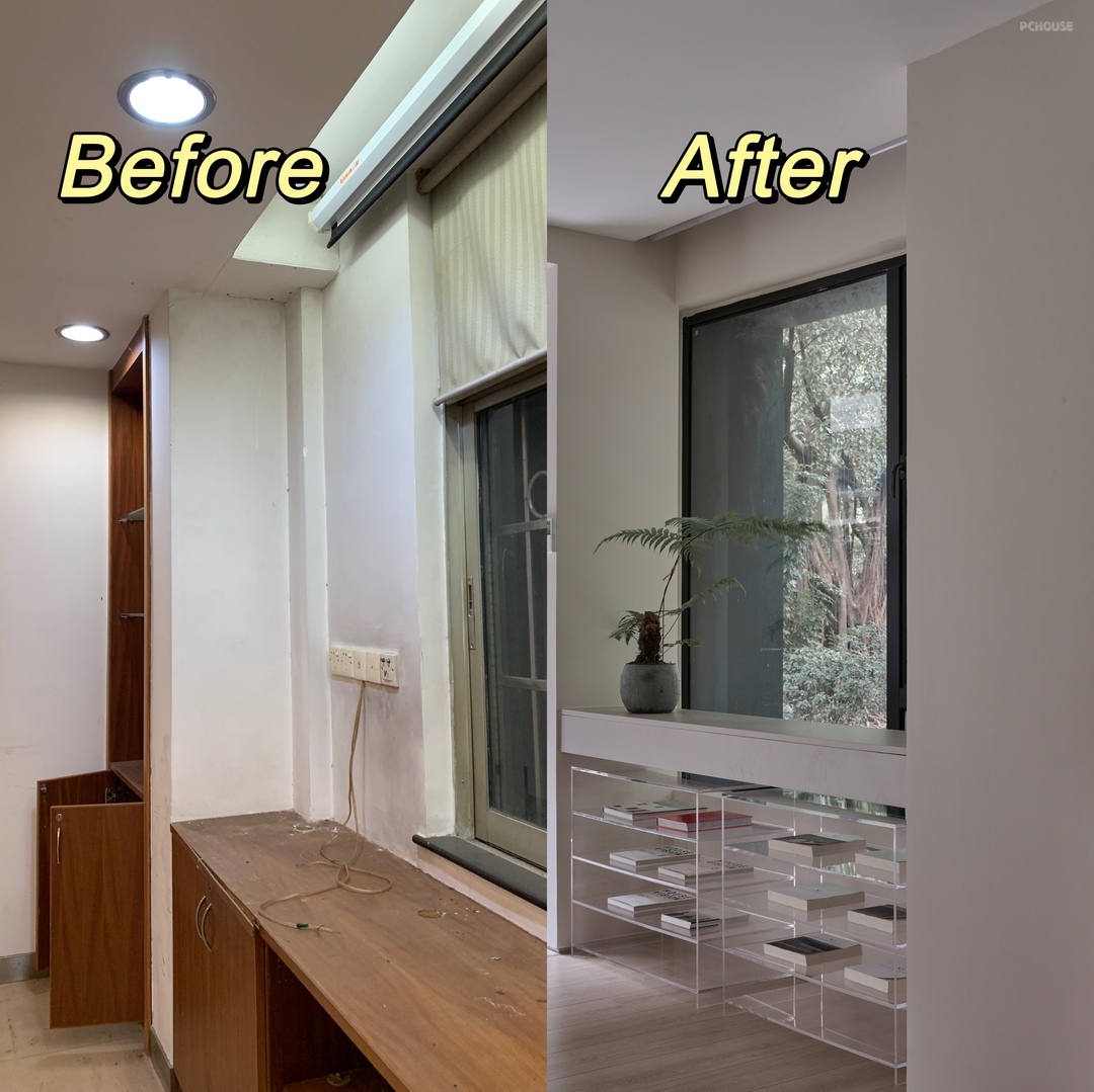 双开玻璃门改成超大落地窗和单开玻璃门,光线更好。