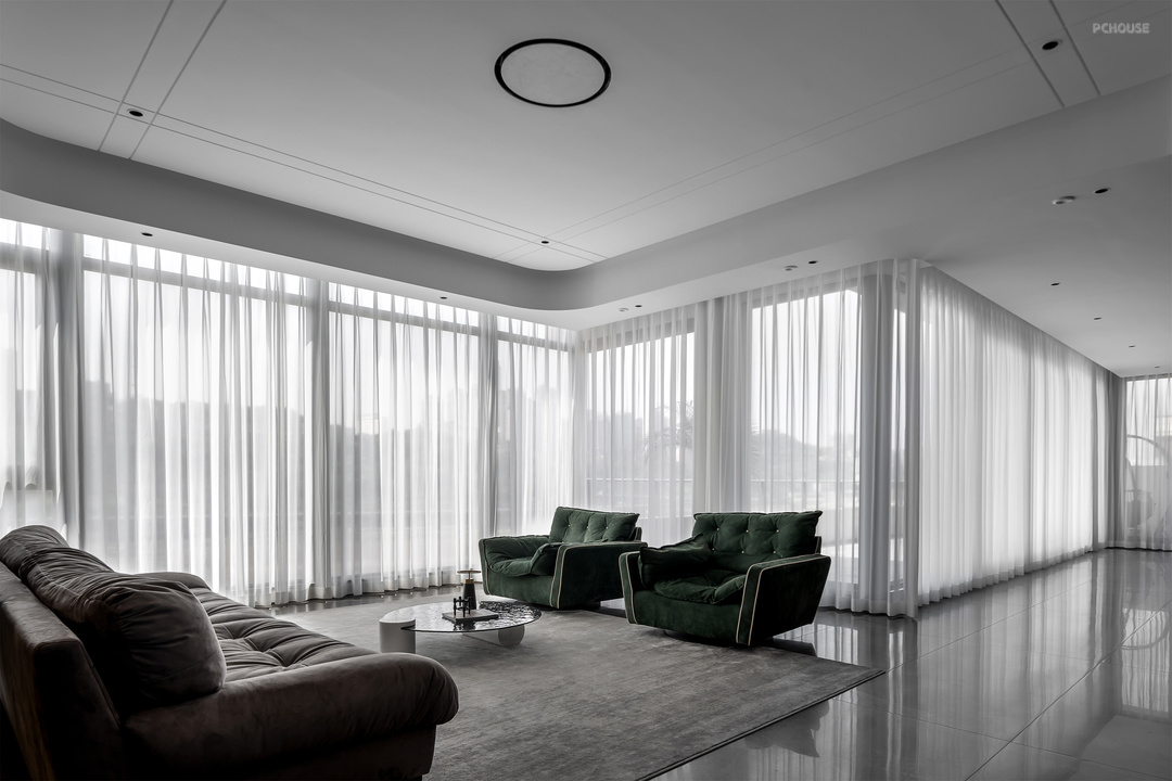 如何在设计中凸出室内与室外的关系,如何解决儿童房缺乏卫生间成为此次设计考虑的重点。设计师用黑白灰为大基调,辅以弧形、木饰面、质感漆让空间更加纯粹,打造一处舒适、自然、诗意的极简居所。