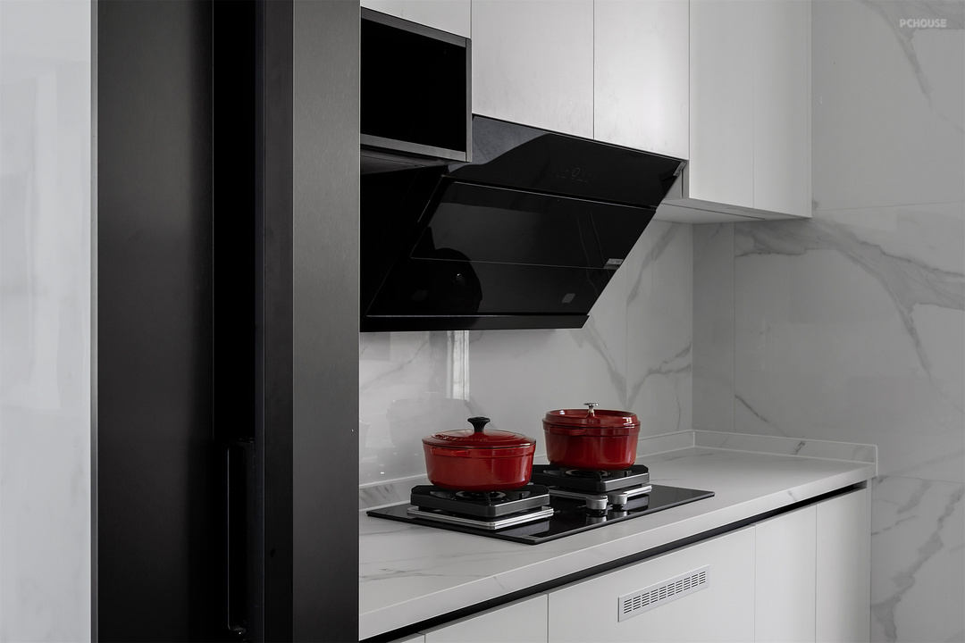 放大餐厅区域,阳台外移,打开餐厨空间,餐岛一体化,承载更多功能和互动性。