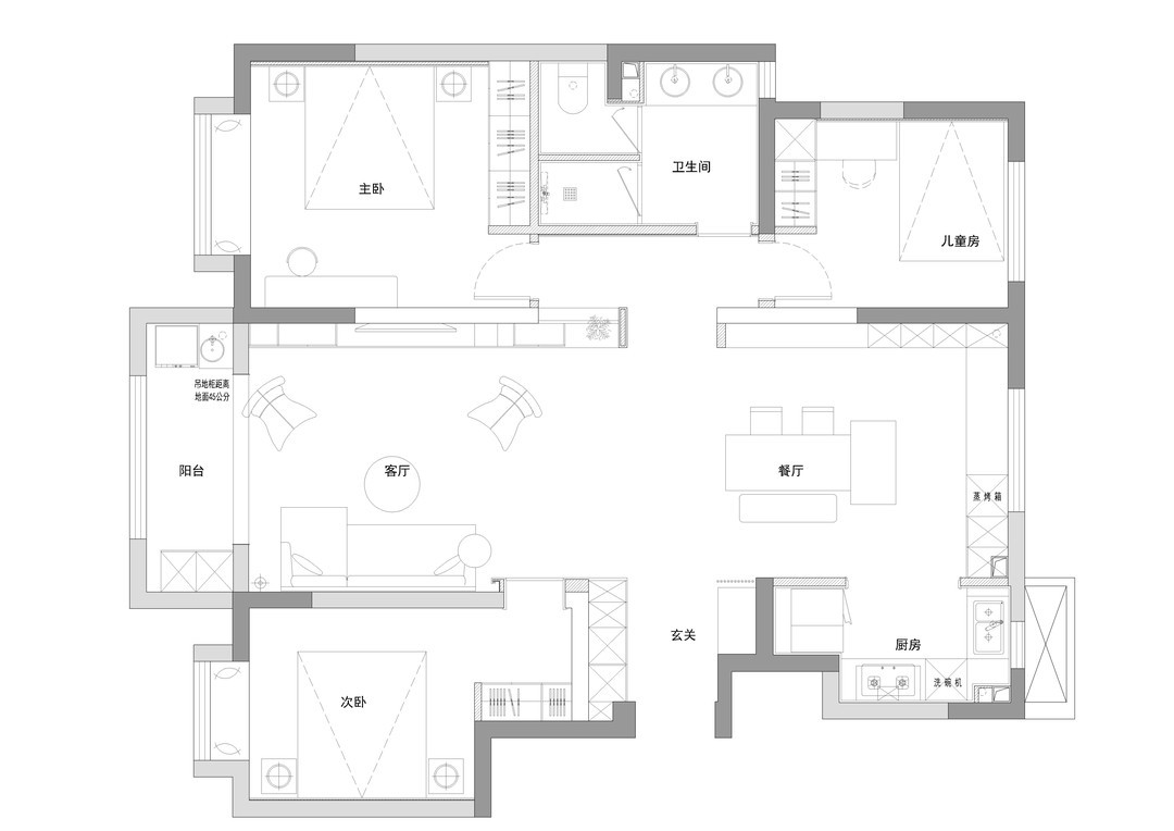 前言: 标准的小三房户型也是他们对这个新家的基本诉求,但原户型在空间划分上仍旧有很多不合理的地方:不够大的餐厨空间、尚不充足的收纳空间以及过多的墙体隔断,都成为建设新家的阻碍。于是,小规模的拆改与重新划分空间后,这个三口之间变得更加温馨舒适。