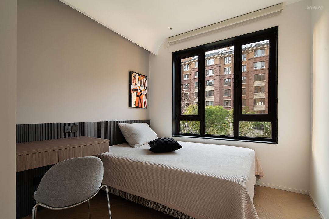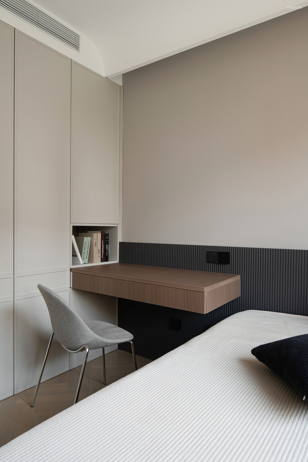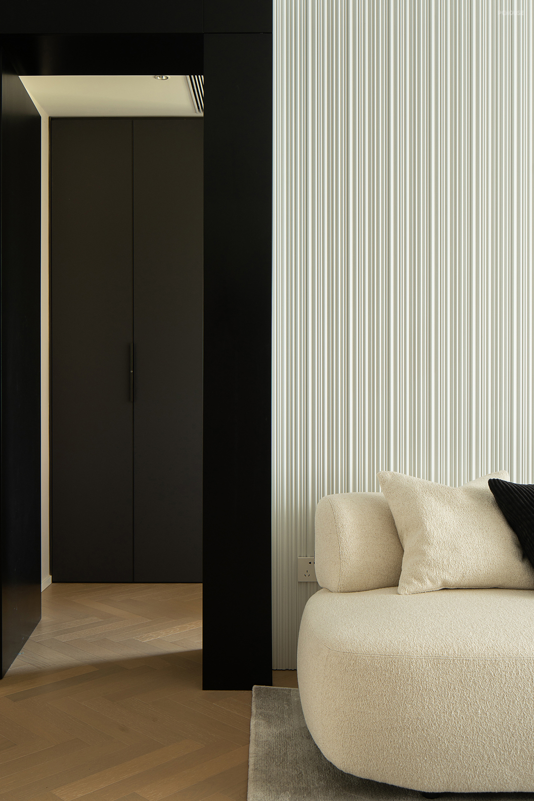 设计师将浅色用作全屋的基底。那是被阳光亲吻过的柔和色彩,拥有与生俱来、与人亲近却也容易被忽视的气质。这种低饱和度、低存在感的基底,是设计师刻意为之的设计:削弱设计的表达欲,更多凸显人的存在感。