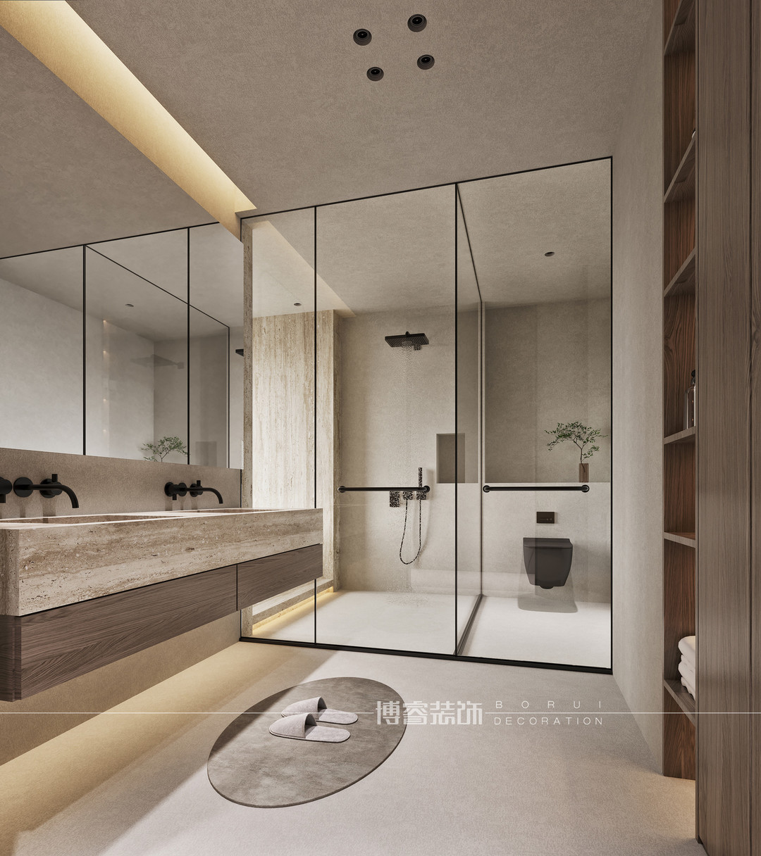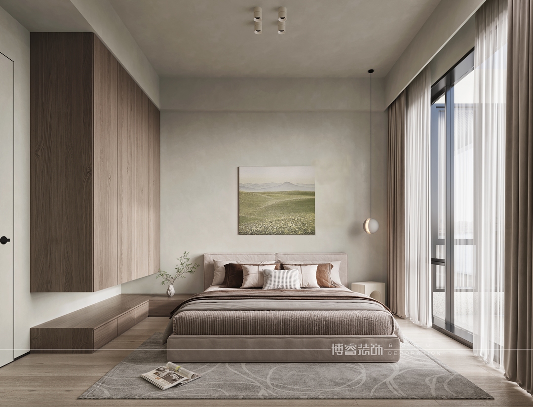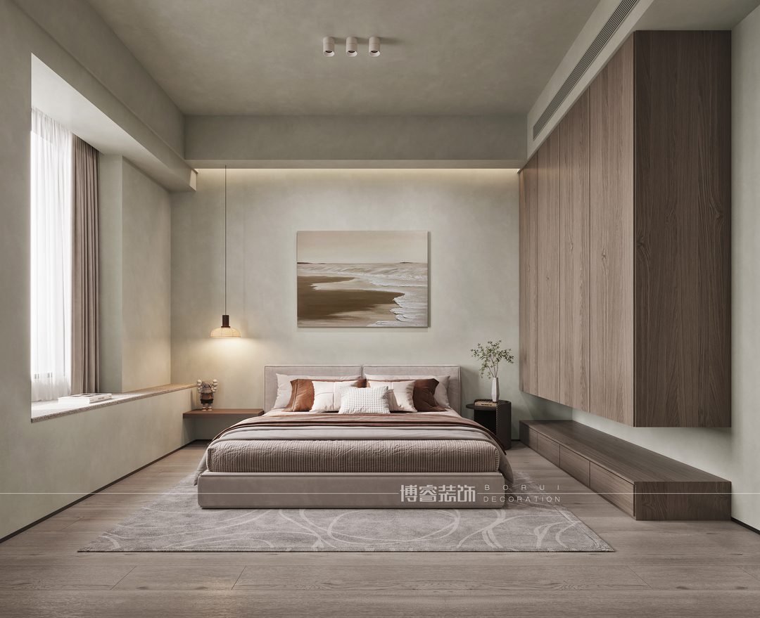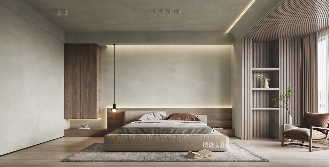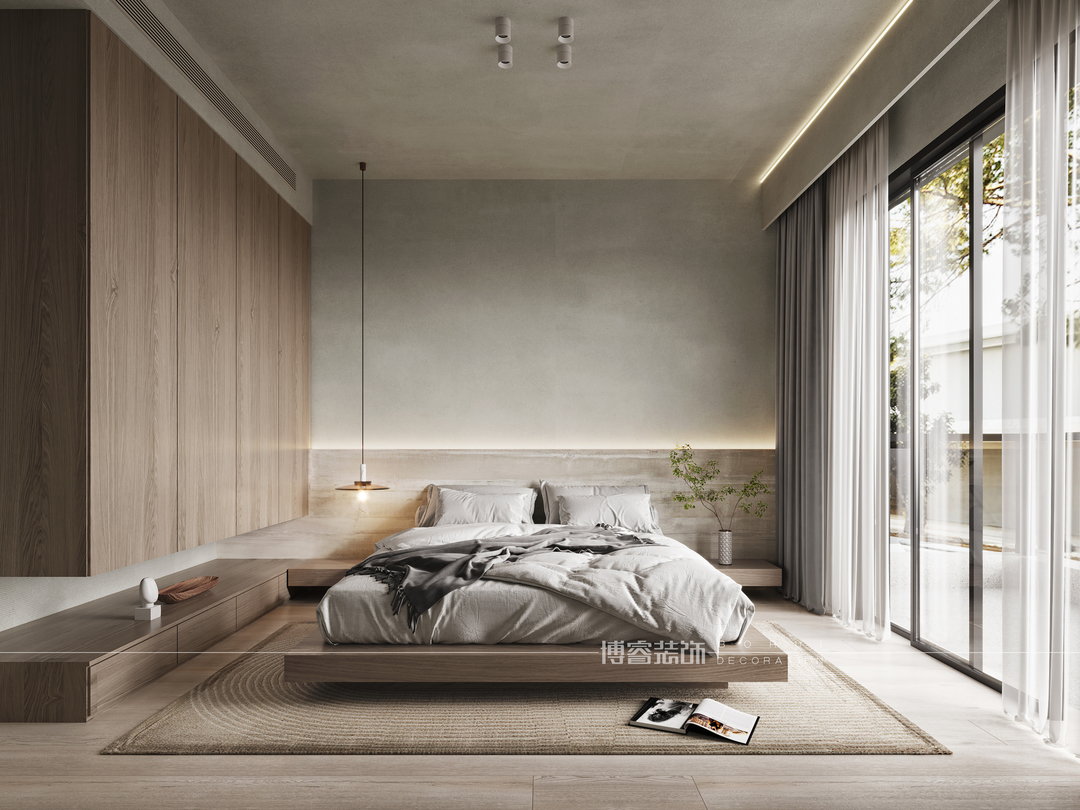 整个空间以大面积的原木元素,搭配纯粹暖意的色调,利用灯光来营造立体感和氛围感,呈现出一个自然舒适的睡眠环境。