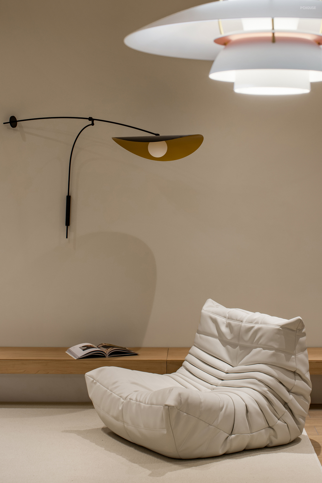 半地下室的采光并不算差,在兼顾隐私和实用性上选择了柔纱卷帘,有自然光的情况下也不会显得地下室太阴暗不透气。