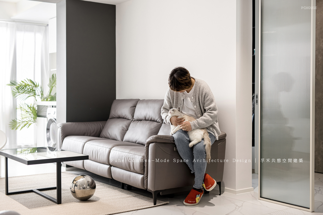 将原有阳台变为休闲区的同时,也将空调机位更好的利用,放置居家清扫的东西,让空间简约低调中又不失一丝精致